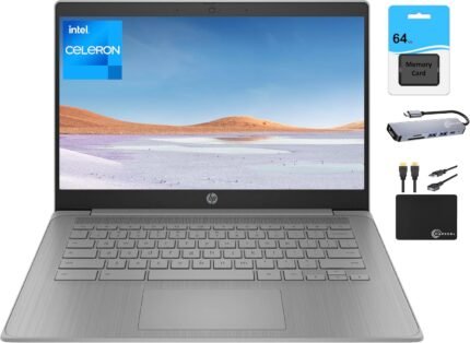 HP Chromebook 14a 14″ HD (Intel 4-Core Celeron N4120, 4GB RAM, 64GB eMMc, UHD Gr…