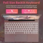 Super Convenient Function:Fingerprint sensor enables fast and secure screen unlocking.The keyboard has a backlight function, providing personalized lighting effects. Also features a 180° opening and closing design, which provides increased flexibility and versatility, allowing for easy collaboration and content sharing from different angles.