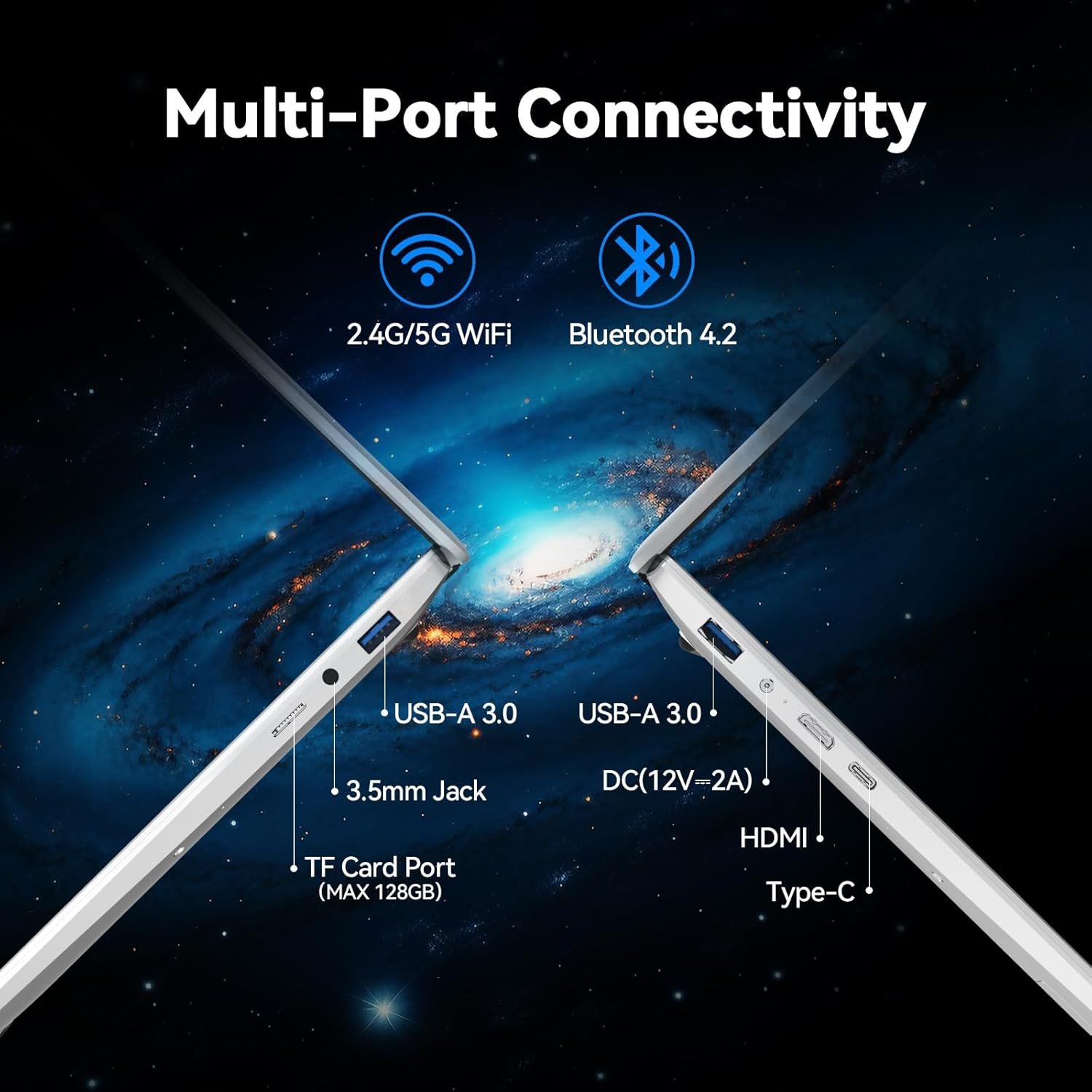 Multifunctional Interface:2x USB 3.0 Type-A, 1 Type-C, 1x HDMI 1.4, 1x 3.5mm Combo Audio Jack, 1x DC port,1x TF card slot, Wi-Fi 6, supports maximum 512GB TF card expansion, A full-size keyboard and big trackpad make you work efficiently, Multi-function ports of the laptop meet your requirements of life and work.