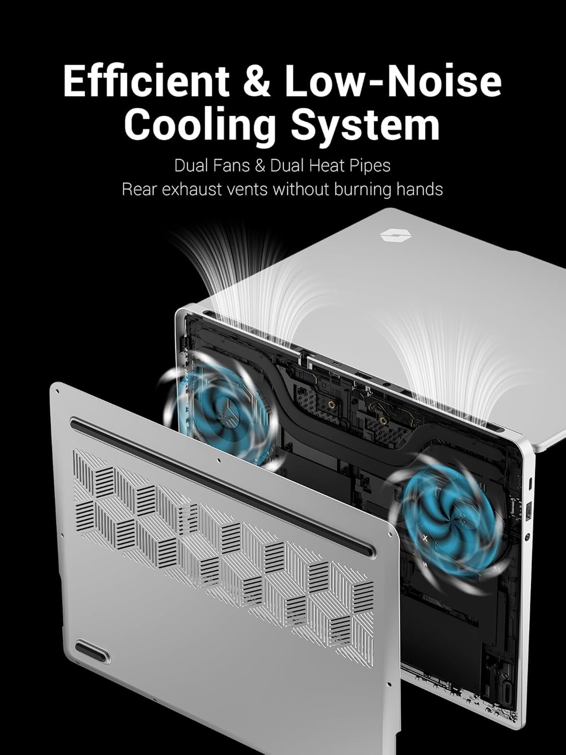 🔺【Whisper-Quiet Cooling & Intelligent Design】Stay cool under pressure with our advanced dual-fan and dual-heatpipe thermal system. Designed for peak efficiency with low noise, the rear-exhaust vent keeps the heat away from your hands during intense workloads. FIREBAT laptop computer balances raw power with refined ergonomics, making it ideal for quiet libraries, professional boardrooms, or home office setups. It’s a sophisticated, high-performance machine designed to stay cool while you work hard.