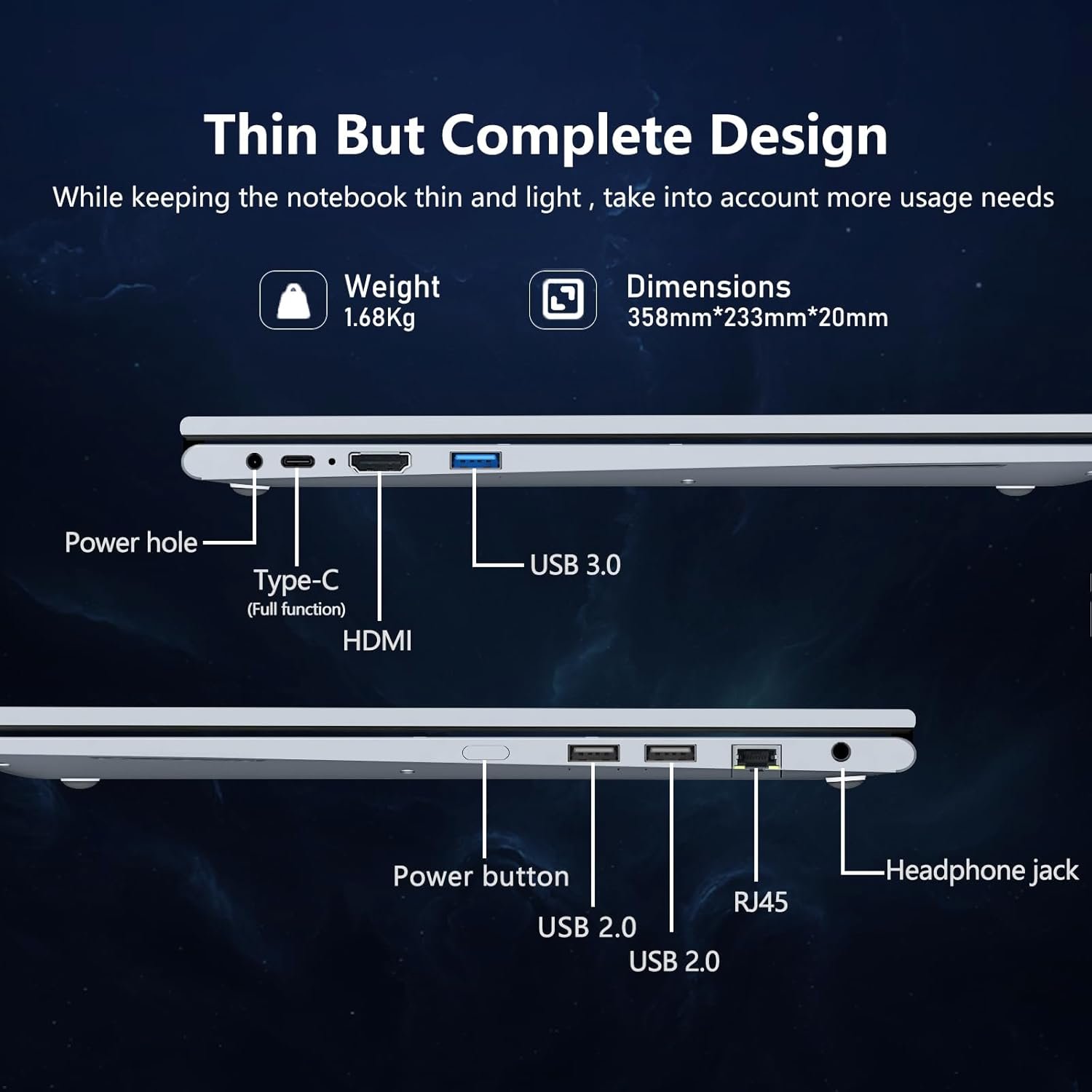 【Rich Multi-Port Laptop】With 3.5mm headphone jack *1, DC charging jack *1, HDMI *1, USB3.0 *1, USB 2.0 *2, full-function Type-c *1, equipped with Bluetooth 5.1 and WiFi 5, the multi-functional laptop makes your work more efficient and simpler, and can easily cope with various scenarios