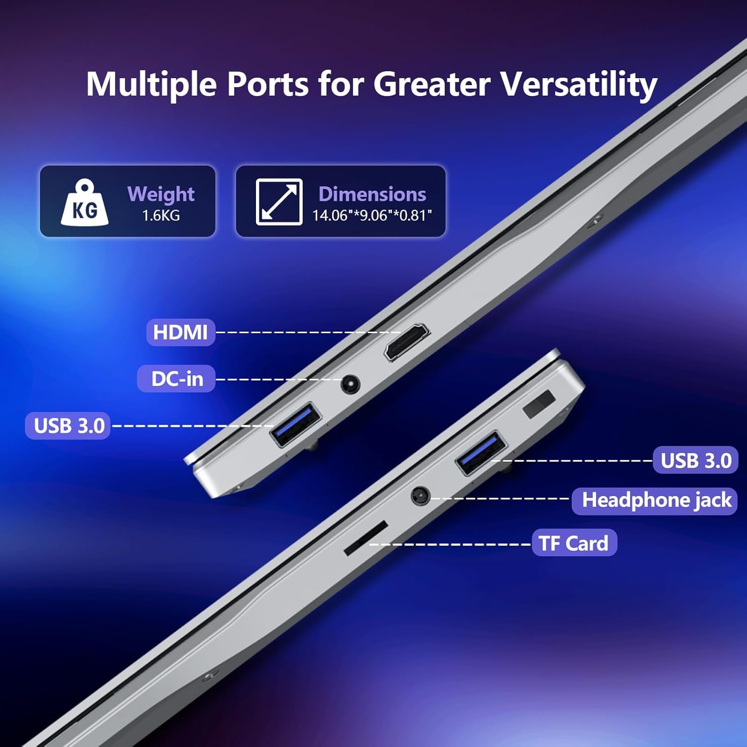 Strong Connectivity & Battery Life: laptop built-in dual USB-A 3.0, Mini HDMI, 3.5mm audio jack, WiFi 5, and BT 4.2—essential for a laptop 2025. The 38Wh battery (7.6V/5000mAh) ensures long runtime, making it a reliable lap top for travel or office laptop use.