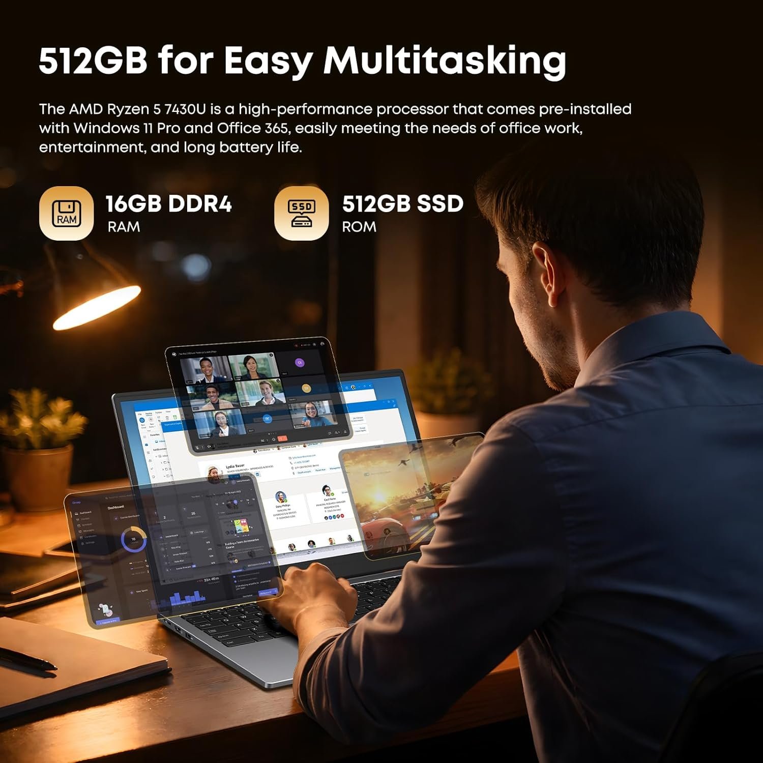 【Ryzen 5 7430U processor performance】This laptop is equipped with an Ryzen 5 7430U processor (Turbo Boost up to 4.3GHz, 6 cores and 12 threads and 16MB of L3 cache) . It can run multiple office software and perform complex Excel operations smoothly without any lag. With this processor, you can easily control the light gaming mode, switch between entertainment at will, and get smooth overall system performance.