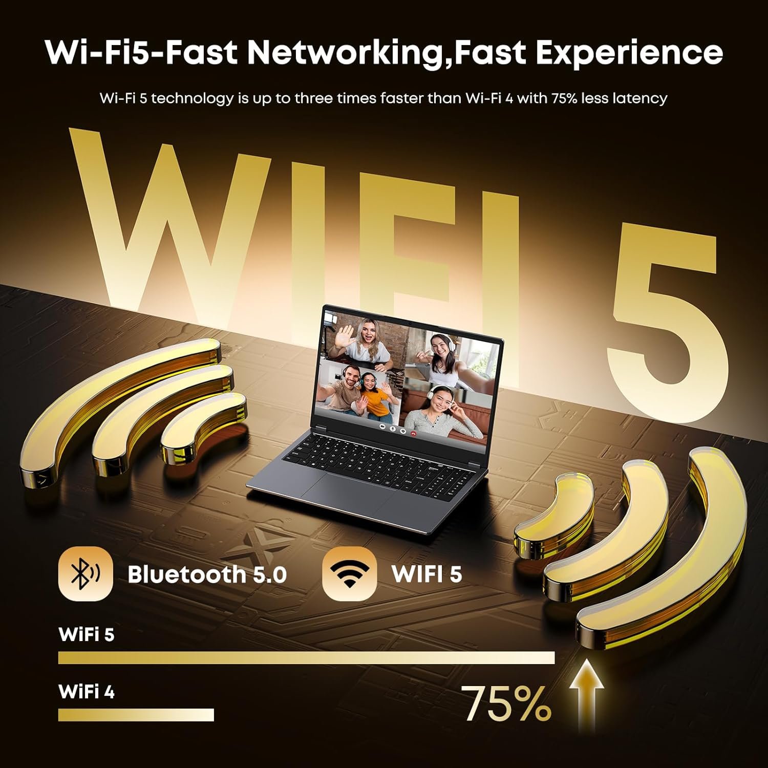 【2.4/5GHz WiFi, BT 5.0 Wireless Connection】Dual-band WiFi provides transmission speed and more stable connection. Bluetooth 5.0 technology optimizes energy consumption and provides transmission speed. In addition, this thin and light laptop also provides you with USB-A 3.0 × 3, HDMI × 1, Type_C × 1, 3.5mm audio/microphone × 1, TF card holder × 1, DC jack × 1. Its 5800Mah long battery life gives you the flexibility to work or play anywhere for 5 hours.