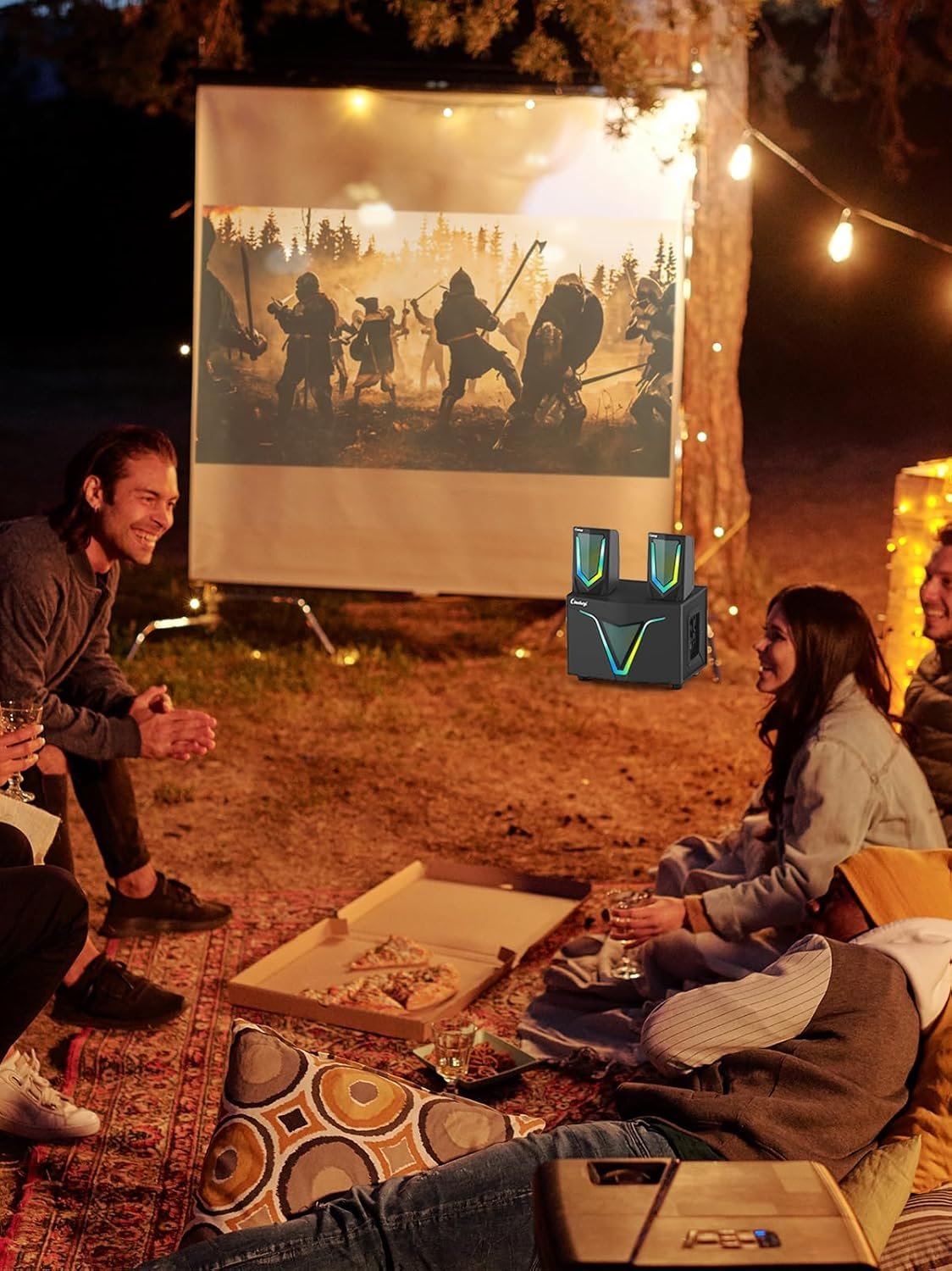 ✅【Friendly Controls & LED Effects】:The main speaker features a straightforward control panel, allowing you to adjust the volume using the side knob or by briefly pressing the play/pause button. For more precise control, you can long-press the previous and next track buttons. It also includes built-in RGB LED lighting effects that change automatically (note: manual adjustment is not available).
