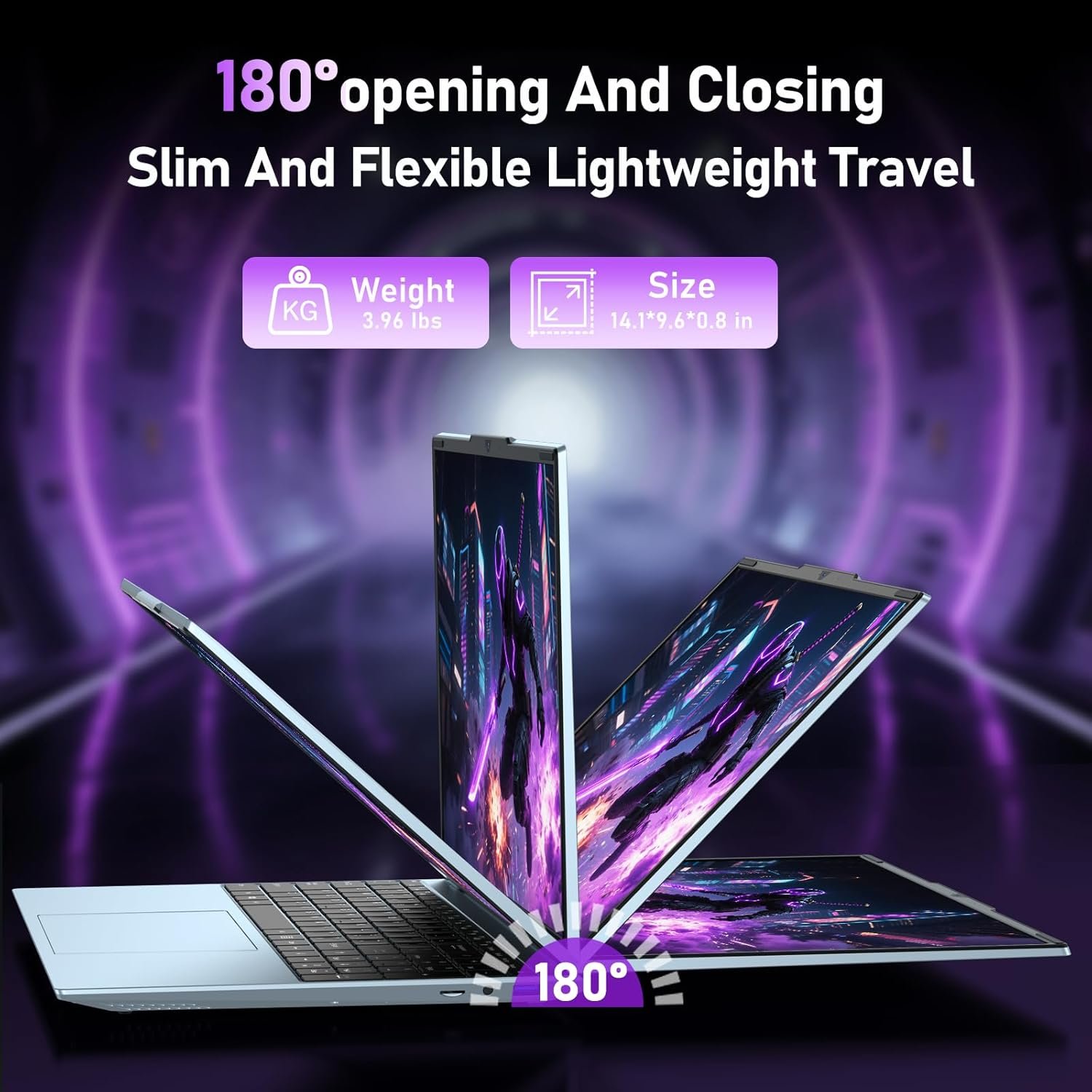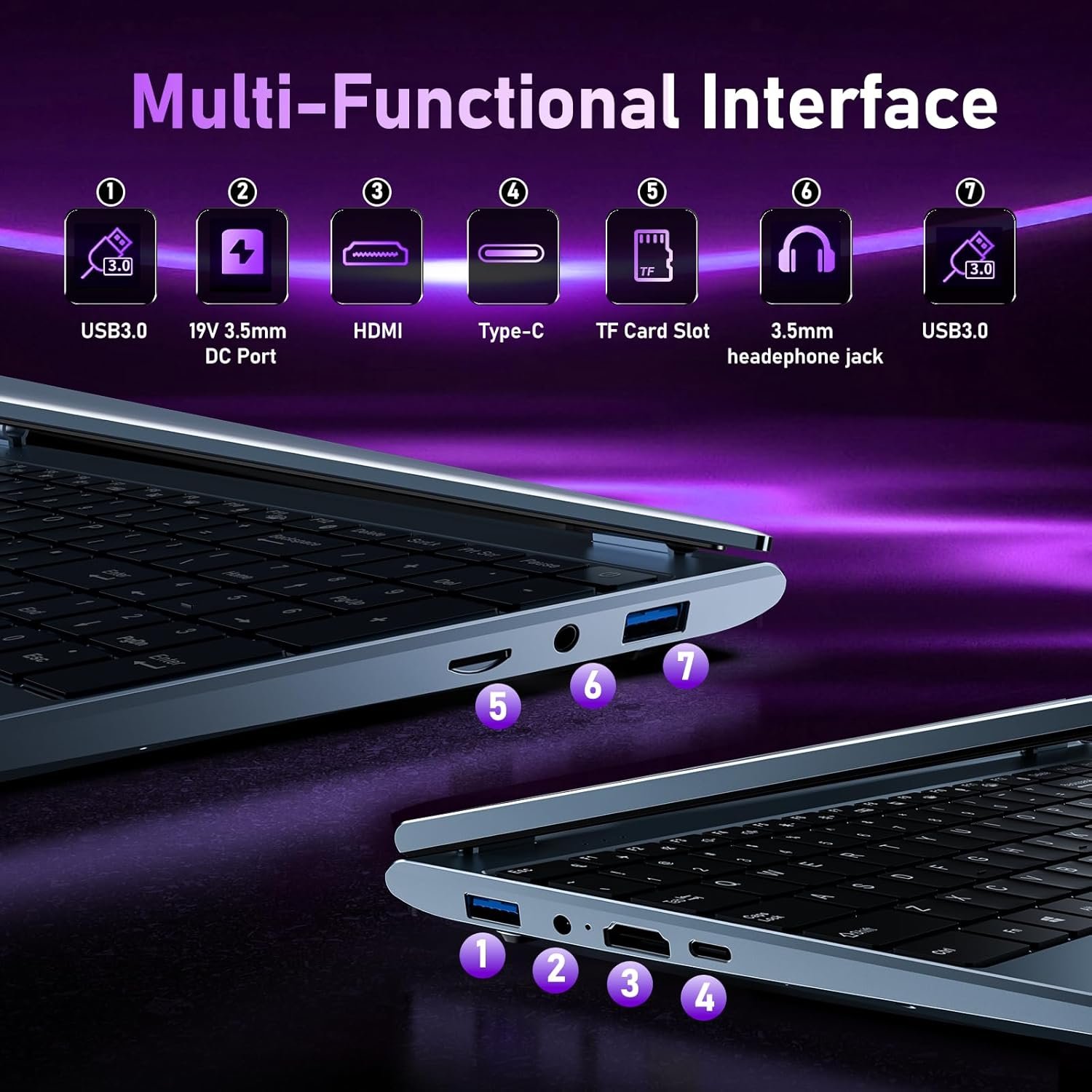 【Enhanced User Experience Features】Weighing just 3.96lbs with a 0.86 inch thin profile, our metal-gray laptop combines durability and portability. Includes a backlit chiclet keyboard, 2x stereo speakers, 720p webcam, digital microphone, and 38.5Wh battery with 65W fast charging – everything you need for efficient work and entertainment.