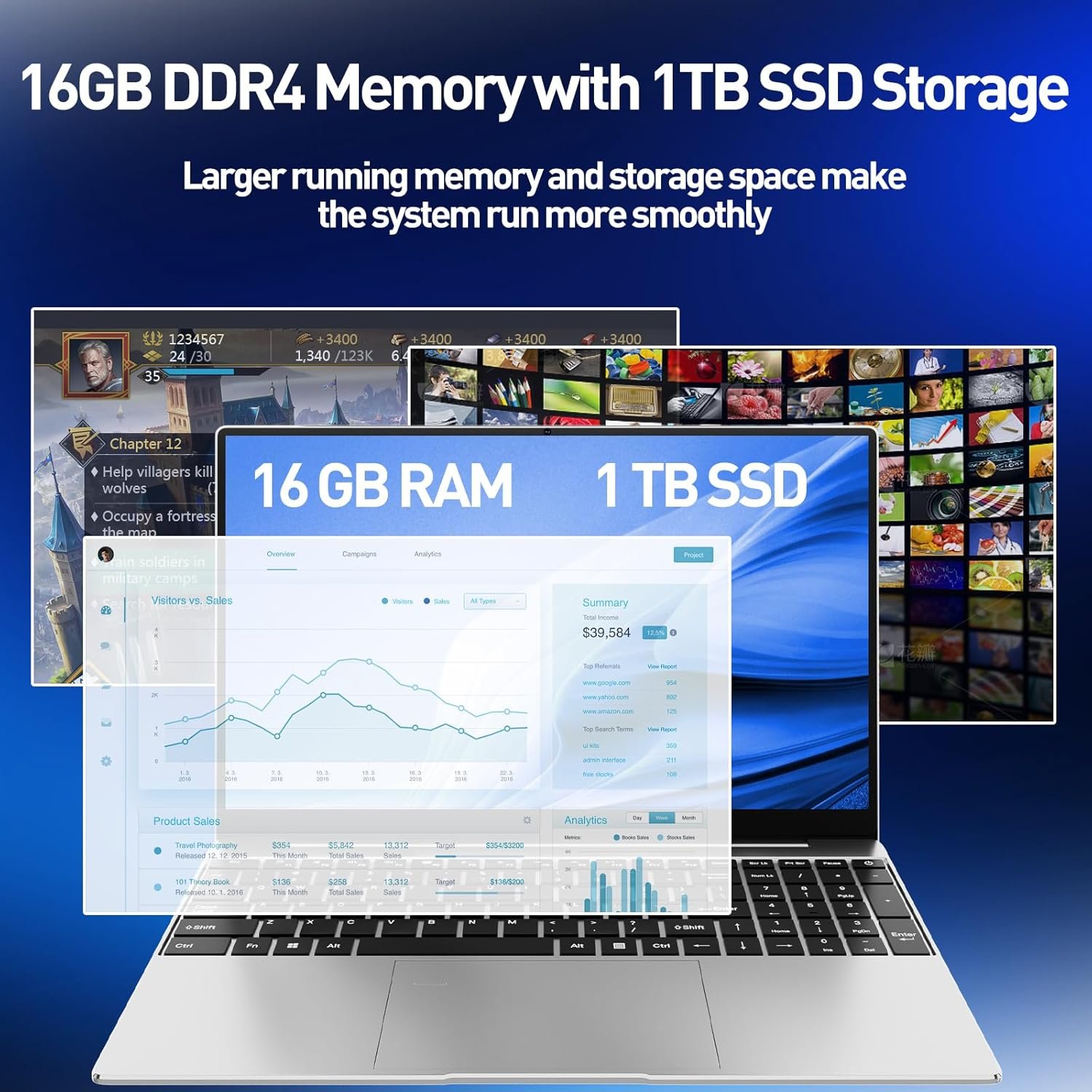 ✅【Immersive Full HD Display】Laptop 16gb ram 15.6-inch IPS display, with its full HD resolution of 1920×1080, brings images to life with exceptional clarity and vibrant color. Whether you’re browsing the web, working on documents, or watching movies, laptops 1tb ssd screen delivers an immersive and visually captivating experience—making every moment feel vivid and real.