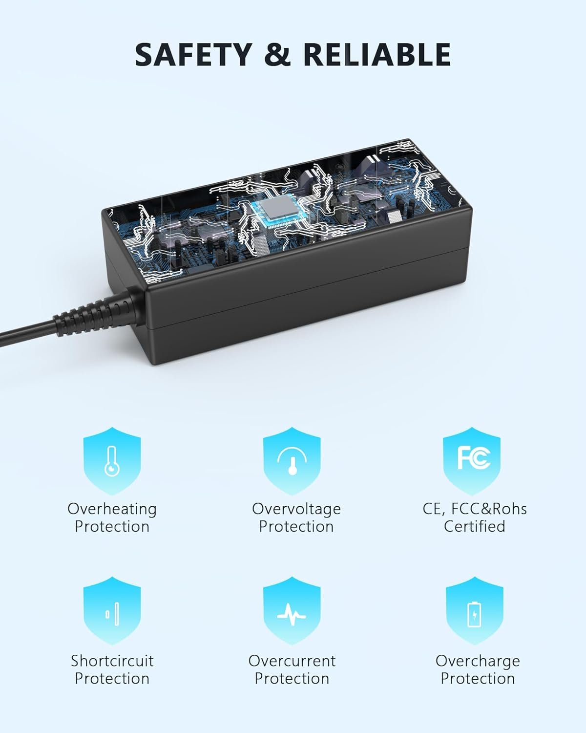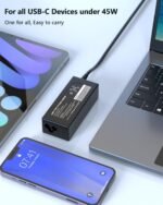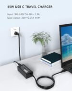 Nivjuky 45W chromebook charger type c with smart chip & fireproof materials. Features overcurrent/overvoltage/short-circuit/overheat protection. Compact & lightweight for travel. Works with most USB-C devices.