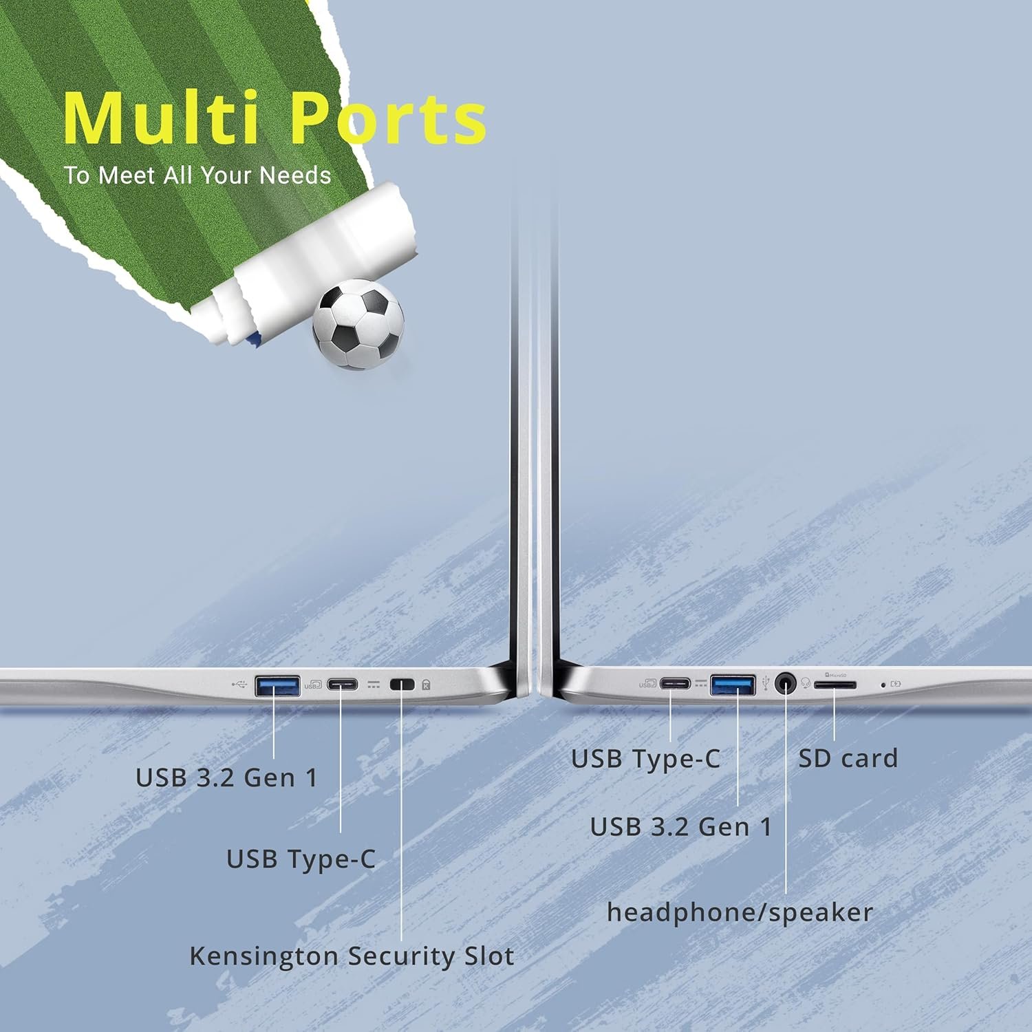 【Chrome OS】Fast boot times, seamless cloud integration, robust security features, versatile app ecosystem, and user-friendly interface make it a compelling choice for students, professionals, and casual users alike. 【Dimensions & Weight】14.42 x 9.61 x 0.79 inches, 3.53 lbs. 【Ports & Slots】2 x USB-C, 2 x USB 3.2 Gen 1, 1x Headphone/Speaker; 1 x SD Card, Kensington Security Slot; Wi-Fi 6 and Bluetooth. Silver. Bonus 128GB Hotface USB Card.
