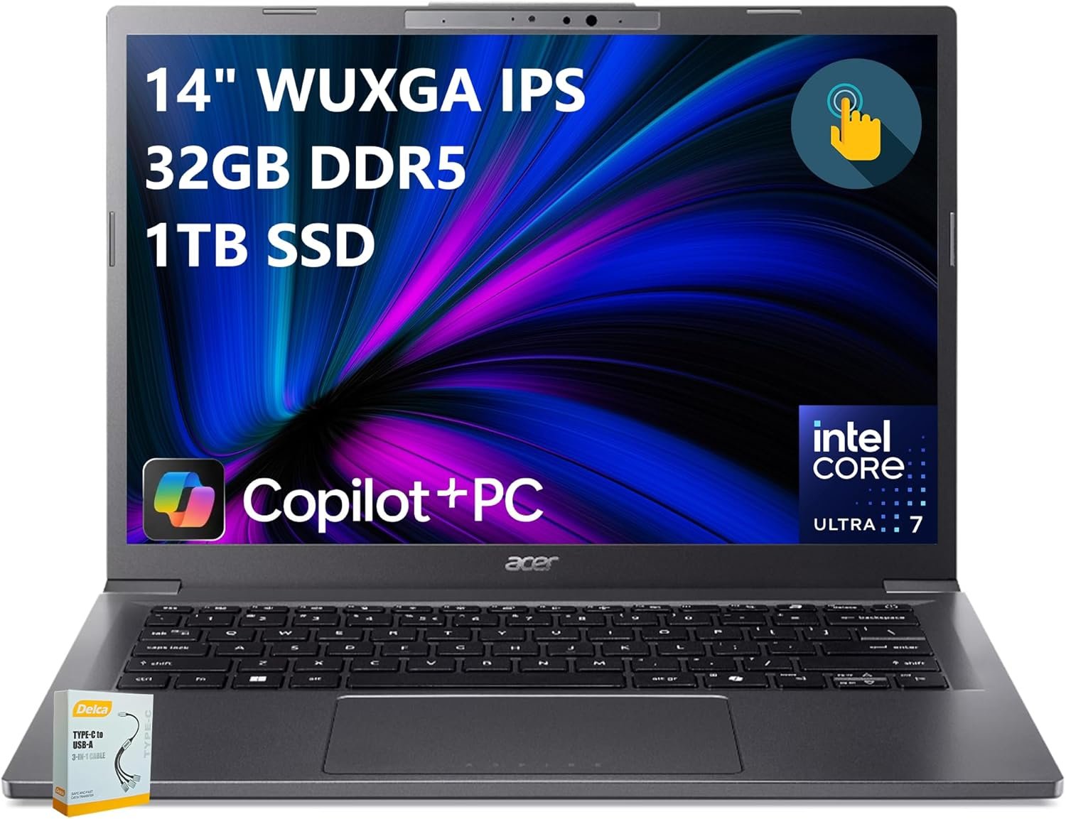acer Aspire 14 AI Copilot+ PC Laptop | 14″ WUXGA IPS Touchscreen | Intel 8-Core …