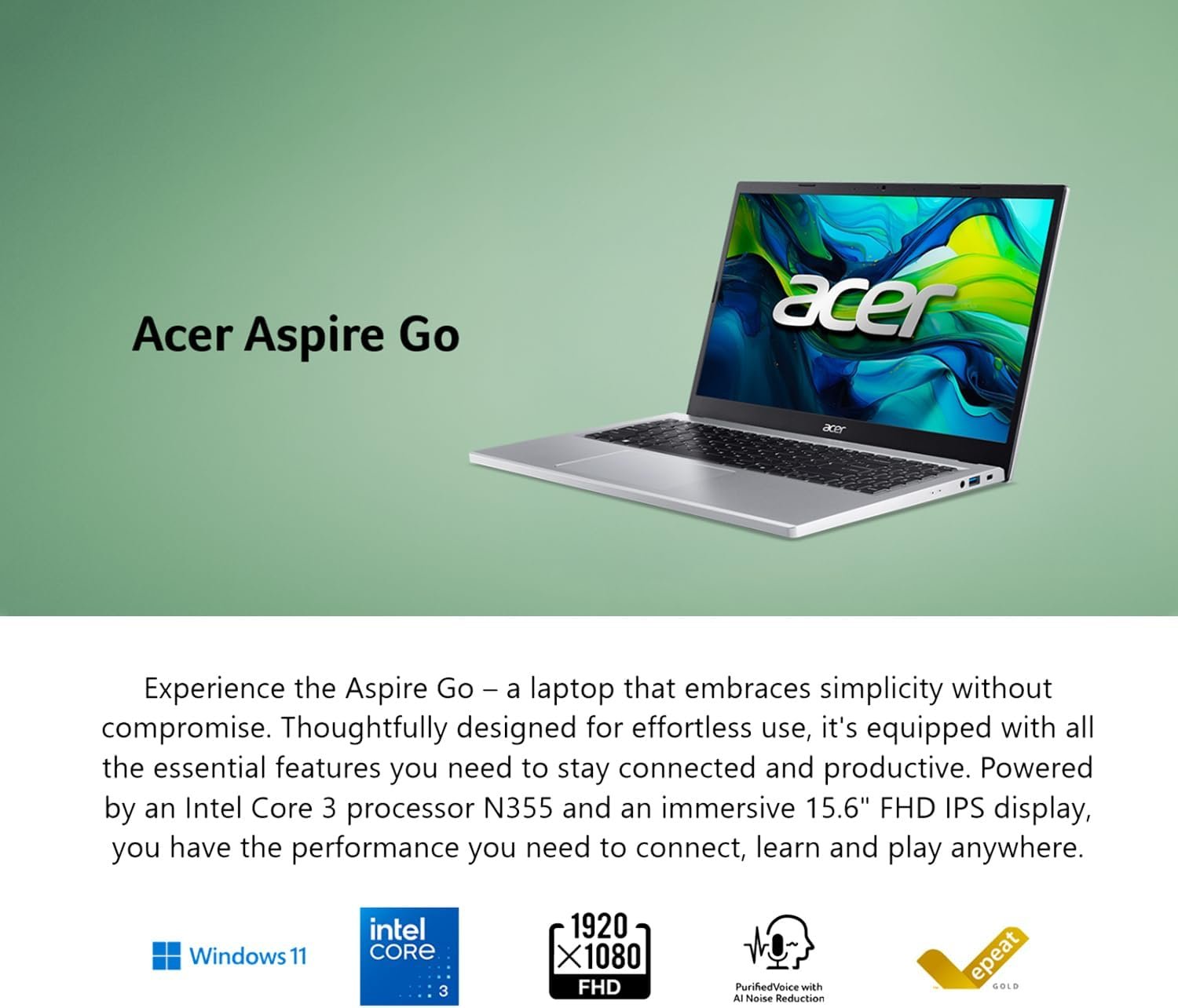 acer Aspire Go 15 Laptop • 15.6” Full HD Display • Next-Gen Intel Core i3 N355 (…