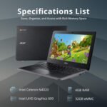 acer Chromebook 311 11.6 HD IPS Laptop. CPU Model Speed: 110 GHz | Display Type: LED | Graphics Coprocessor: Intel UHD Graphics 600 | Keyboard Layout: Qwerty