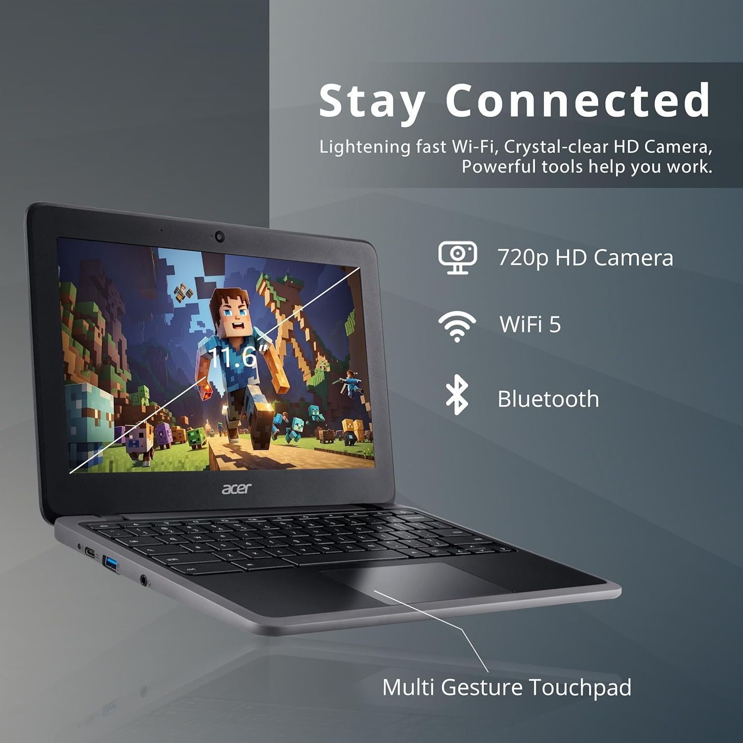 【Chrome OS】Chrome OS is secure, fast, up-to-date, versatile, and simple. With thousands of apps, built-in virus protection and cloud backups. 【Dimensions & Weight】12.8 x 9.1 x 0.78 in, 3.75 lbs. 【Ports & Slots】2x USB 3.1 Type A, 2 USB 3.1 Type-C, 1x Audio combo jack; 1x Kensington Lock. Wi-Fi 5 and Bluetooth 5.0, 720P HD Front-facing Camera. Black.