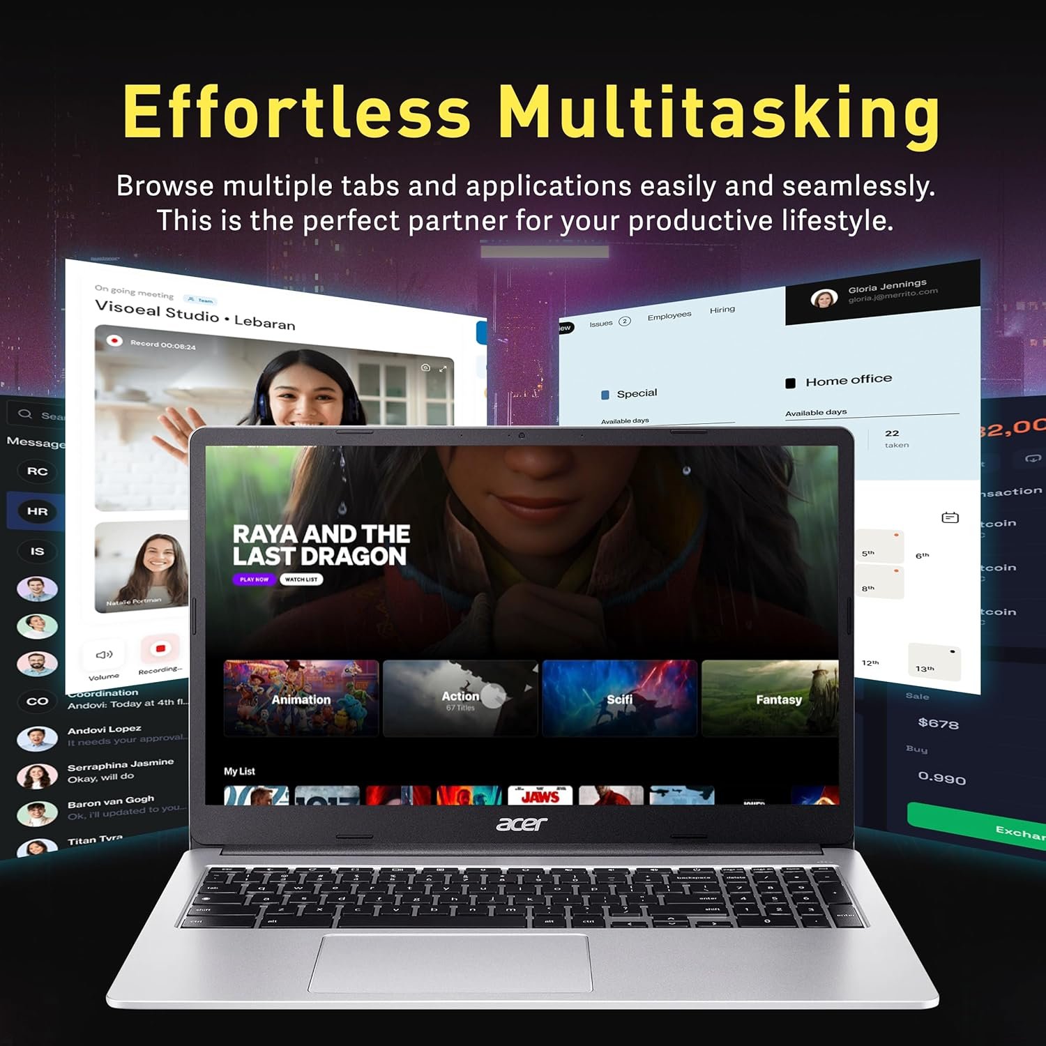 【Chrome OS】The Cloud-First, Secure OS for your Business.【Dimensions & Weight】14.42 x 9.61 x 0.79 inches, 3.53 lbs. 【Ports】2 x USB-Type A, 2 x USB-Type C, 1 x Headset Jack, 1 x Micro SD Card Reader, WiFi 6, Silver. 【Bonus Docking Station Set】1x 7-in-1 Docking Station with 128GB Storage, 1x 32GB MicroSD Card with Adapter, 1x Type-C Data Cable, 1x 3-in-1 Charging Cable, 1x Suede Cleaning Cloth.
