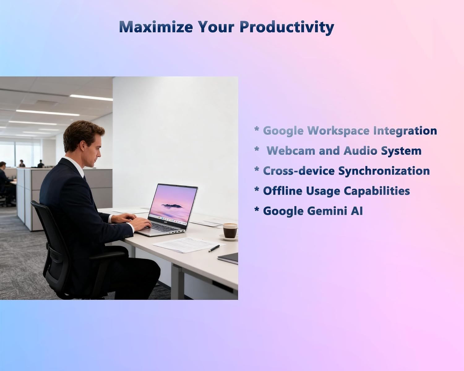 【Enterprise-Grade Security for Business Peace of Mind】Equipped with Chrome OS’s enterprise-level protection, automatic updates, and built-in virus defense, it shields sensitive work data—ideal for business users. Students also benefit from secure browsing for assignments.
