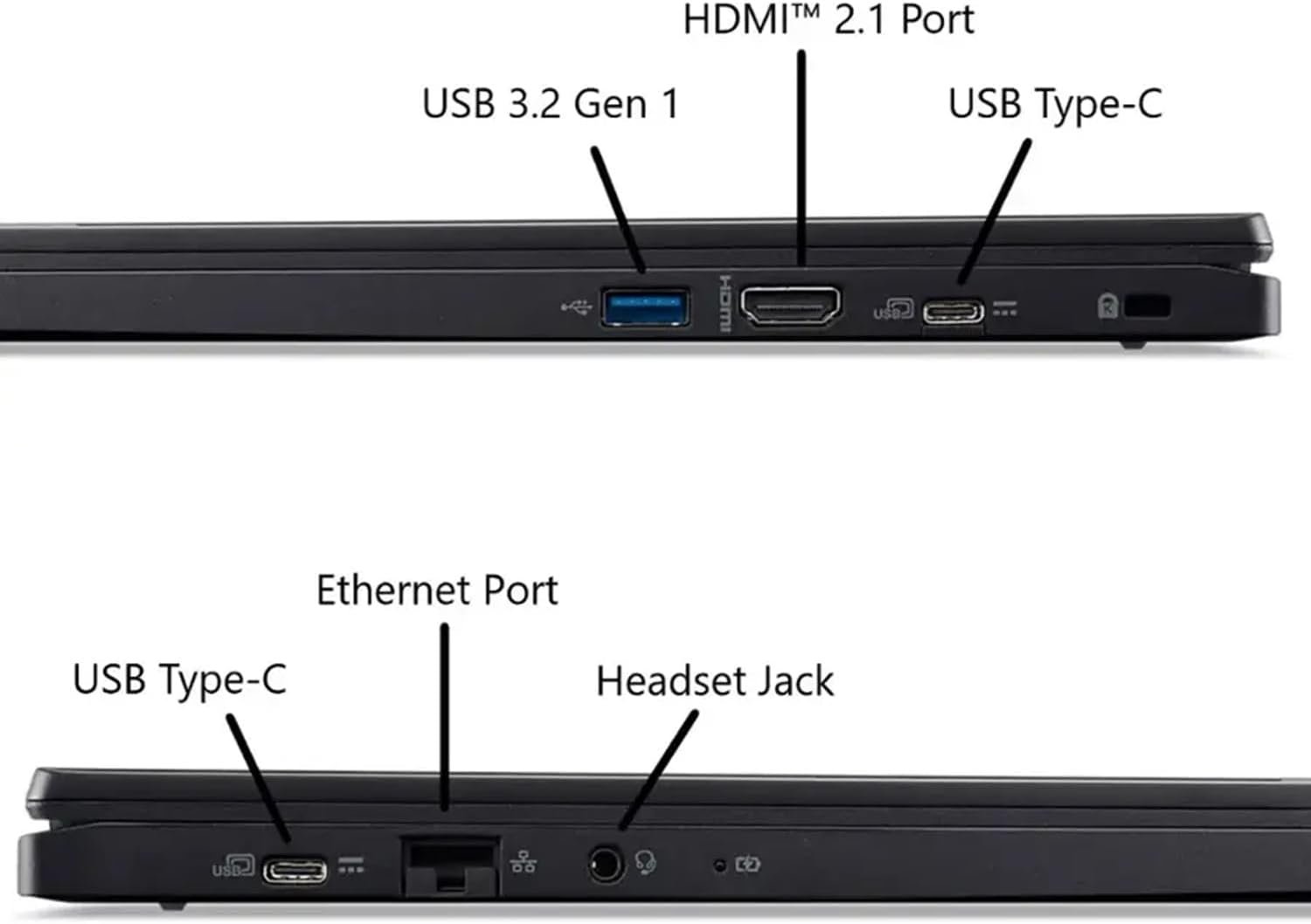 USB 3.2 Gen1; 2x USB-C; HDMI 2.1; Ethernet; Headphone/microphone combo jack