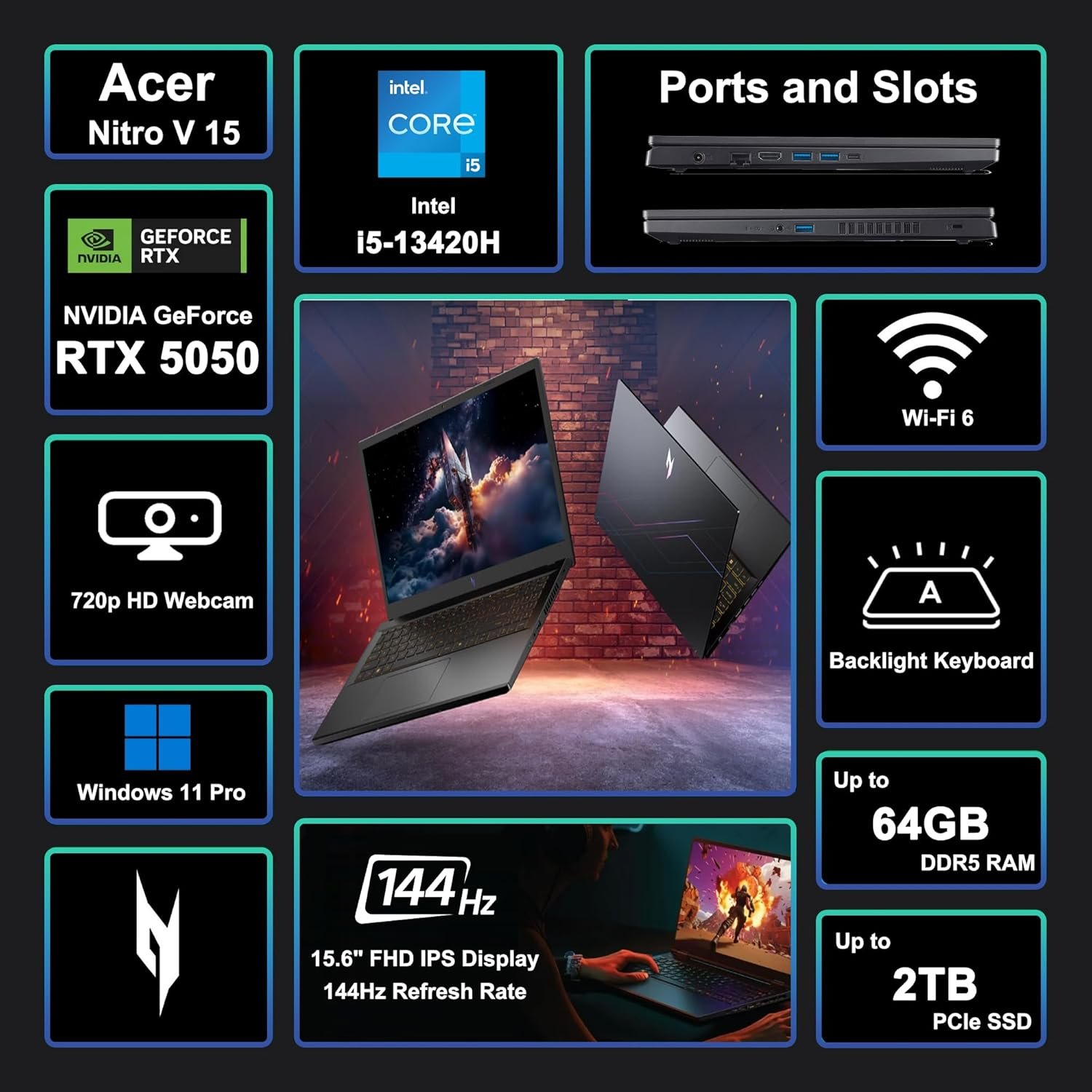 15.6″ FHD (1920×1080) IPS 165Hz, Dedicated NVIDIA GeForce RTX 5050 8GB GDDR7 Graphics