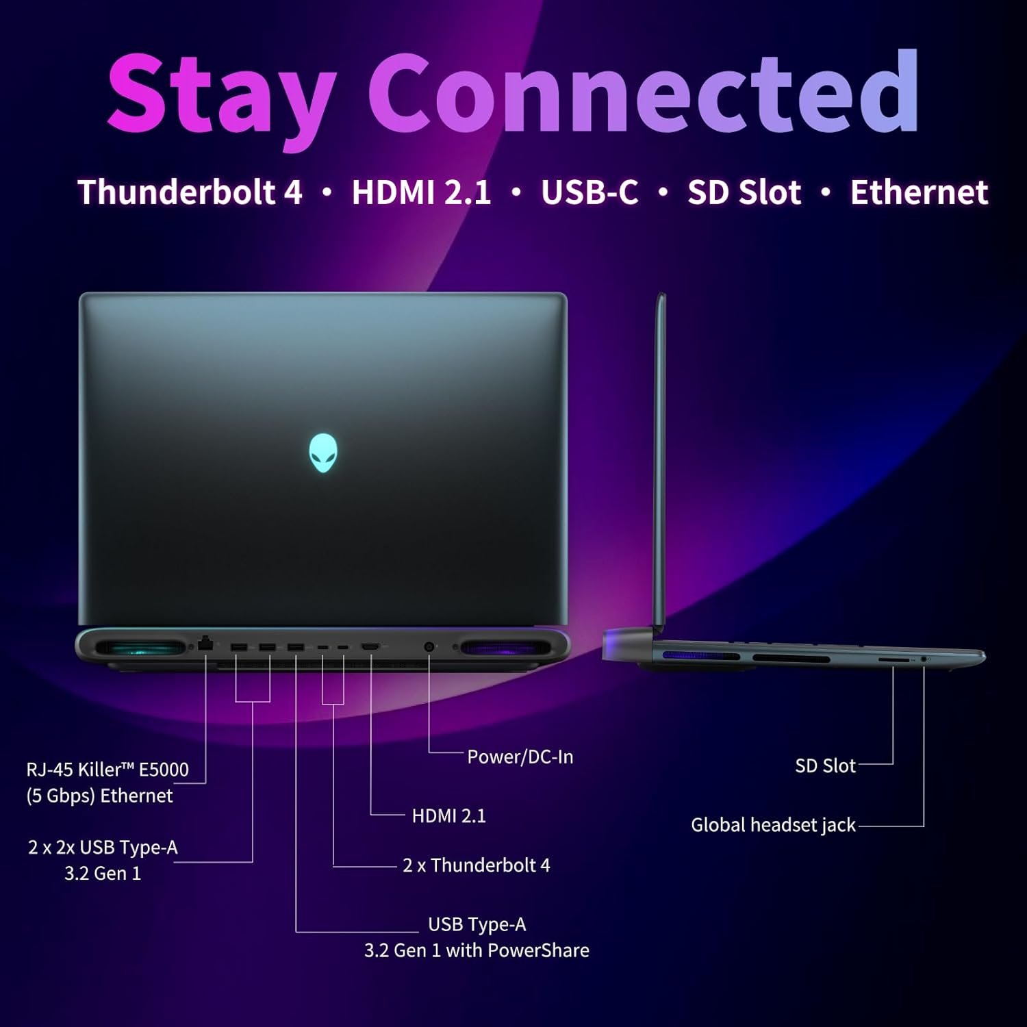 🚀High-Performance Graphics: Equipped with NVIDIA GeForce RTX 5080 16GB GDDR7, this Alienware gaming laptop supports demanding titles, design software, and video editing, offering stunning visuals and fluid gameplay for gamers, creators, and professionals alike.