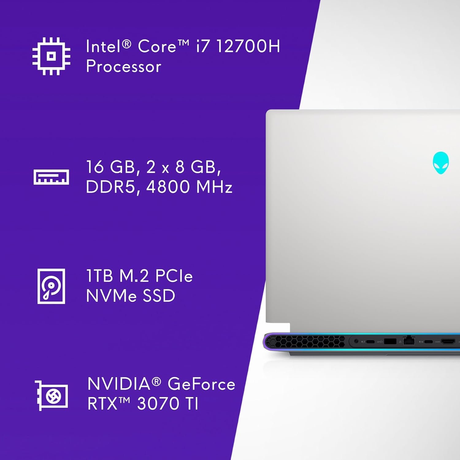 Alienware gaming laptops bring incredible performance to all kinds of gamers. The x17 selection of gaming PCs and accessories are perfect for gamers who want something better to improve their gaming experience. The Alienware x17 R2 is built with a beautiful 17.3 inch FHD display allowing gamers to easily see their competition as it comes their way. The latest NVIDIA GeForce RTX 3070 Ti graphics card is designed with 2nd gen RTX architectures with new RT and Tensor Cores for the most realistic ray-traced graphics and cutting-edge AI features. Wi-Fi 6 allows for incredible connectivity so you never have to worry about being disconnected during gameplay. The Alienware x17 R2 Intel Core i7 processor gives you the ultimate power whether you’re gaming online with friends or deep into a creative project. This gaming laptop is configured with 16GB RAM memory and a 1TB solid state storage drive.
