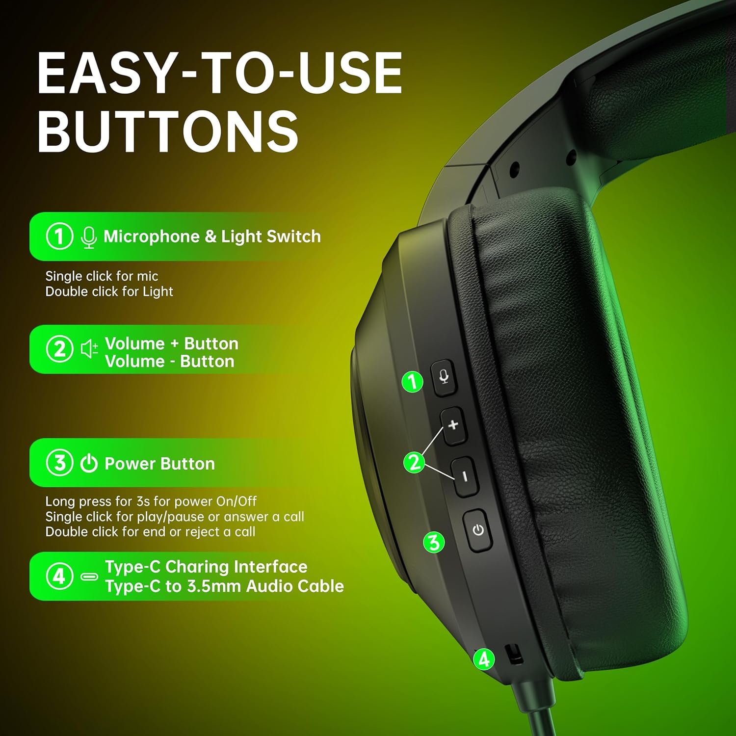 【Long-Lasting Battery with Fast Charge】The AOC over-ear wireless gaming headset can power through up to 45 hours of gameplay on a single charge. A full recharge takes only 2 hours via USB-C, and you can continue gaming while charging so you’ll never be sidelined when the battery runs low.
