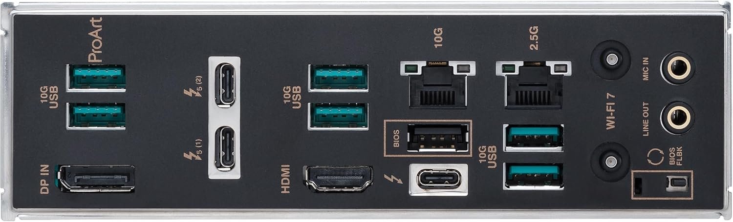 Future-proofed connectivity: Dual Thunderbolt 5 & a Thunderbolt 4 ports, 10 Gb & 2.5 Gb Ethernet, WiFi 7, two PCIe 5.0 with full support for next-gen GPU, and one PCIE 5.0, four PCIe 4.0 M.2 slots and a USB 20Gbps front-panel header