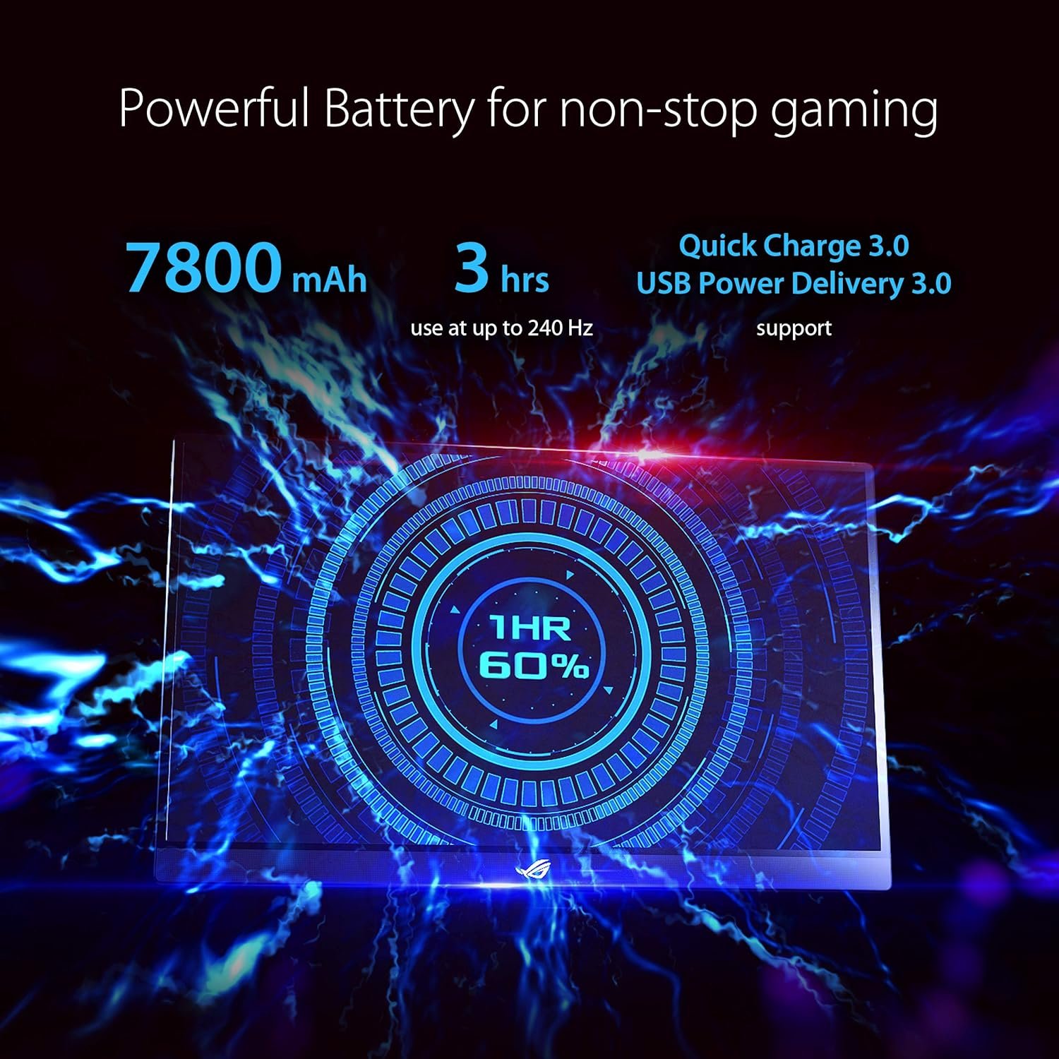 Built-in battery provides up to 3 hours at 240hz refresh rate