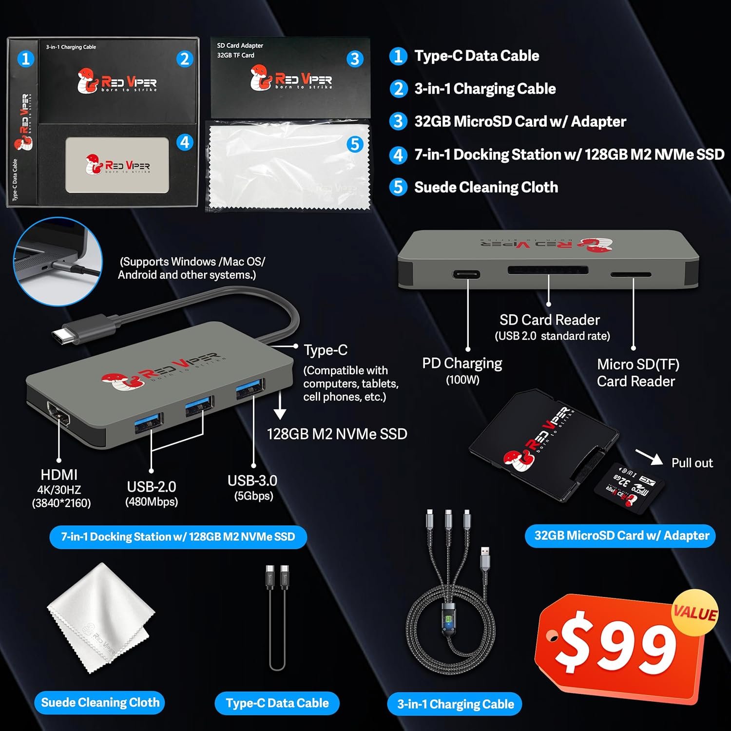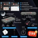 [Windows 11 Pro] Elevate your productivity with a powerful and intuitive operating system, designed for efficiency. [Ports] 1x USB 3.2 Gen 2 Type-C with Display Port 1.4, 1x USB 3.2 Gen 2 Type-C, 2x USB 3.2 Gen 1 Type-A, 1x Audio Jack, 1x HDMI 2.1, 1x RJ45. Wi-Fi 6E. 15.55 x 1.21 x 11.1 inches, 5.9 lbs. [Bonus 128GB Docking Station Set] 1x Type-C Data Cable, 1x 3-in-1 Charging Cable,1x 32GB MicroSD Card with Adapter, 1x 7-in-1 Docking Station with 128GB M2 NVMe SSD, 1x Cleaning Cloth.