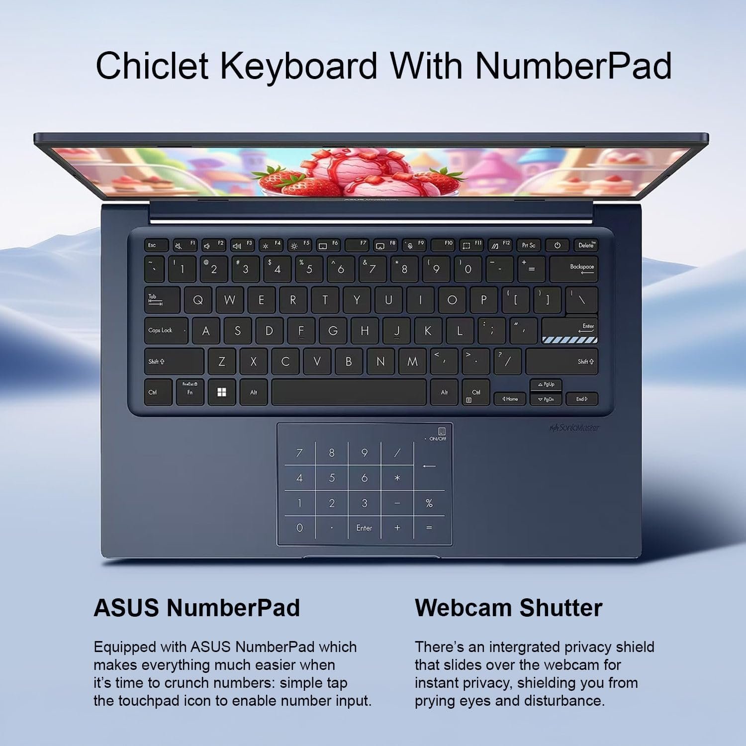 Built-in Webcam: 720p HD front camera with ASUS Webcam Shield (Privacy Shutter)