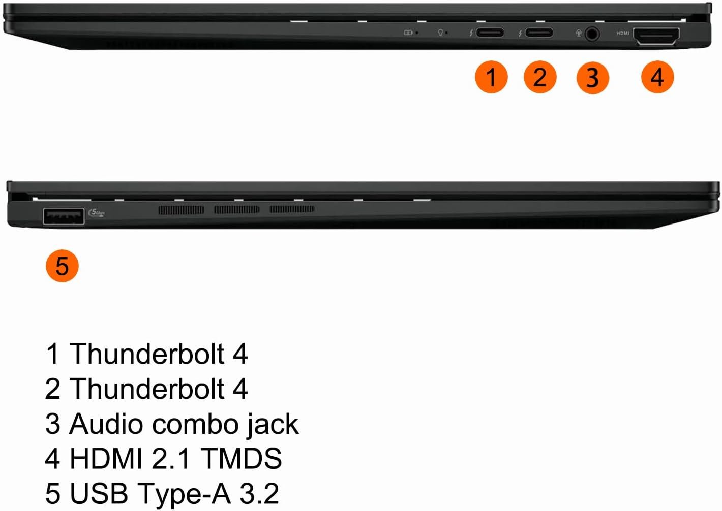2 x Thunderbolt 4, 1 x USB-A 3.2, 1 x HDMI 2.1 TMDS