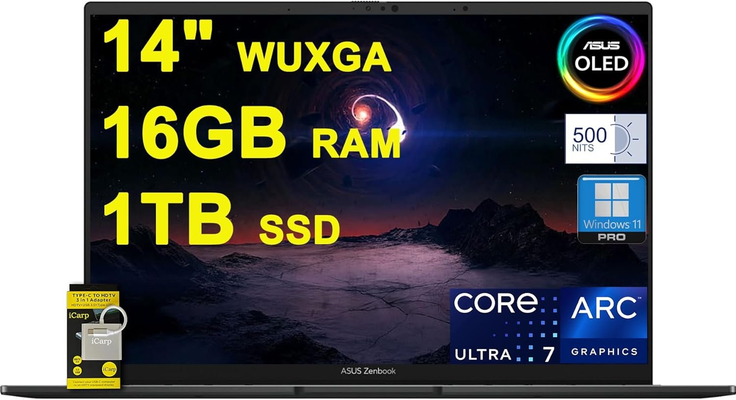 ASUS Zenbook 14 OLED Copilot AI PC Laptop 14″ WUXGA Lumina OLED Touch 500nits In…