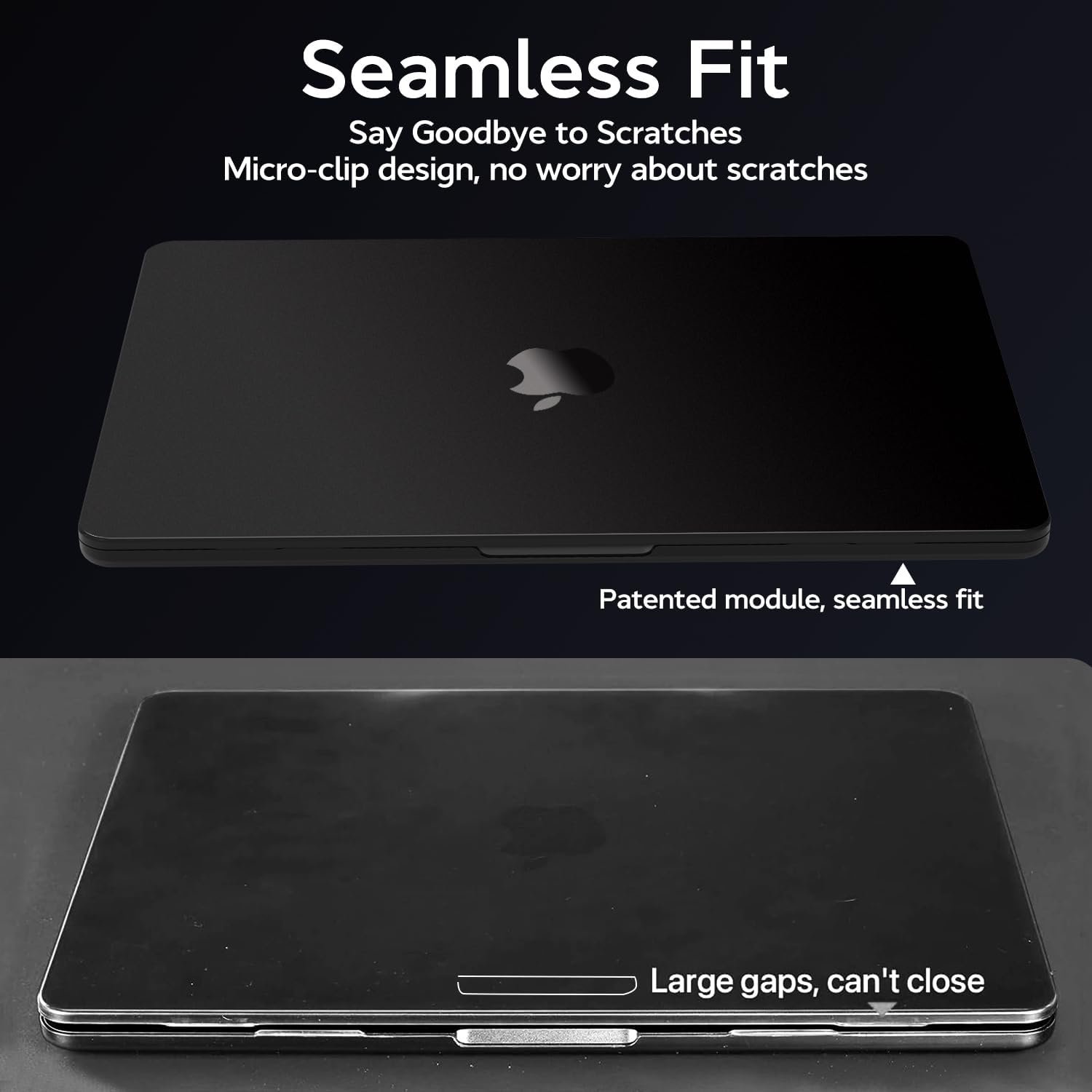 Same as Bare MacBook: Crafted with high-precision and micro-etching matte finish, perfectly matches your device and retains the original sleek and minimalist design. The oil-repellent nano-coating effectively reduces fingerprints, smudges, and scratches on daily use