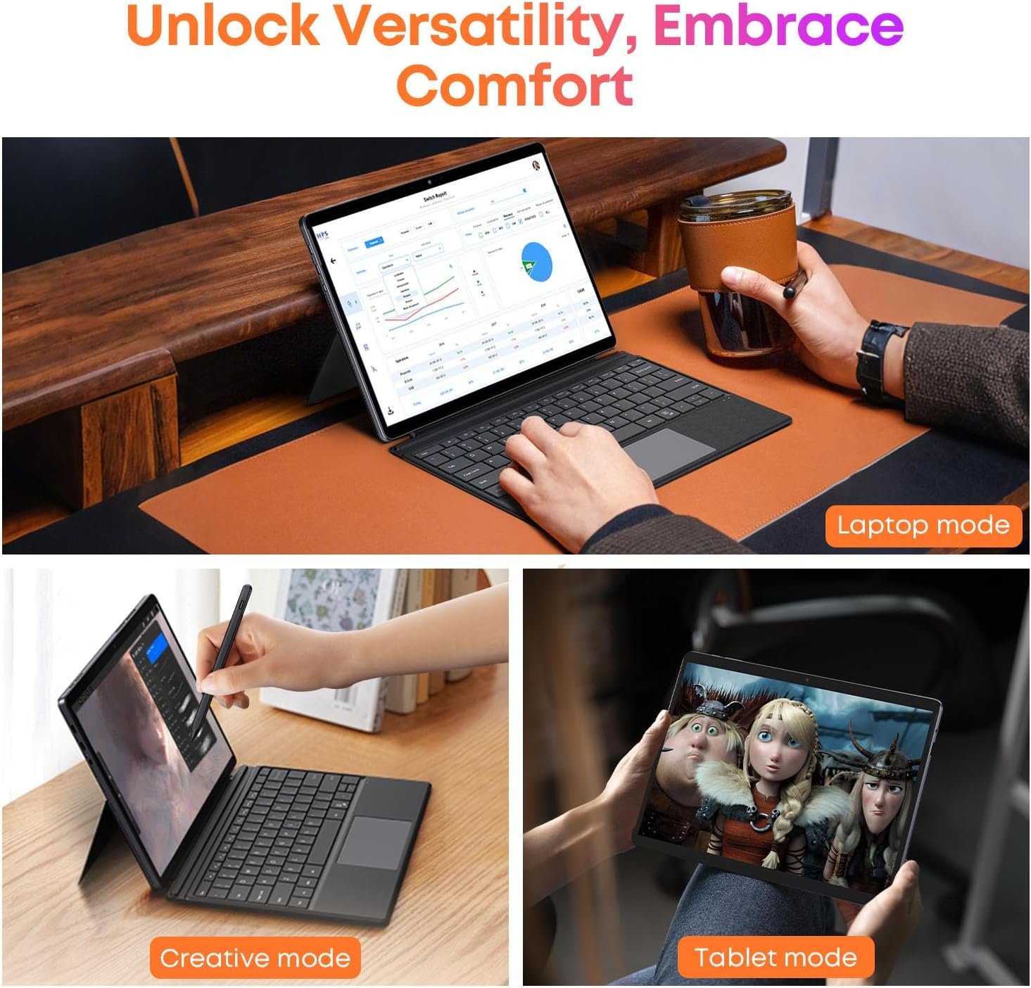 12GB LPDDR5 RAM + 512GB SSD: This 2 in 1 touchscreen tablet built-in LPDDR5 12GB memory, which provide you a faster speed without delay, and 512GB SSD Storage help you store important documents and HD movies, download music and play games easily.