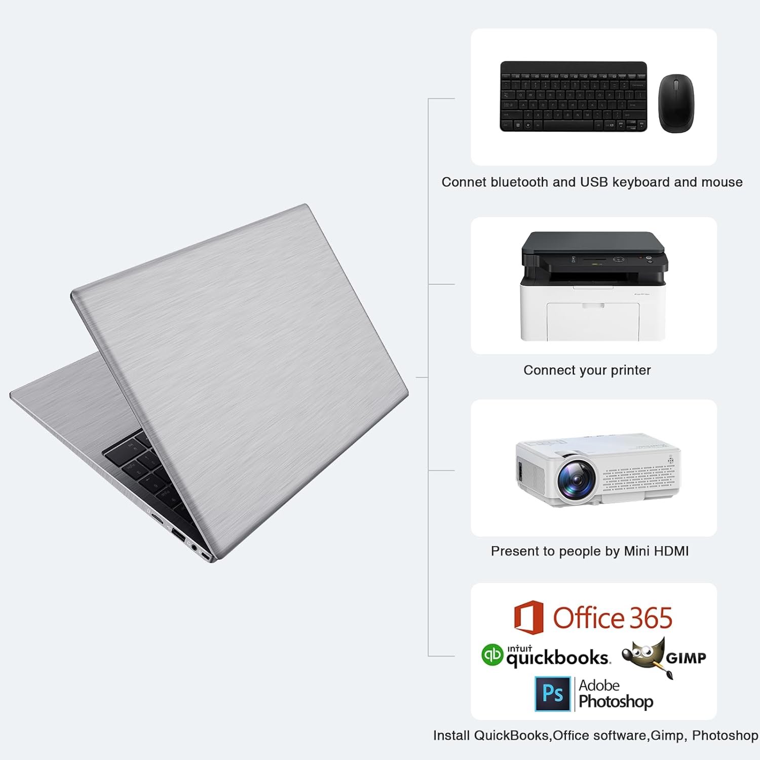 【Abundant Connectivity】HealBook Pro has 3 USB ports, standard HDMI, Type-c port, 3.5mm headphone ports and DC adapter interface. And the Type-c port supports charging(Max 45W), data transfer and streams of audio and video output. It also supports built-in microphone, and surround audio playback! We’re so confident in our line of laptops and notebooks, we offer a full 12-month warranty!