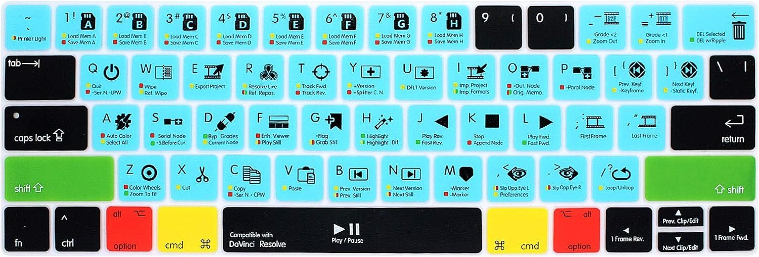Davinci Resolve Shortcuts Hotkey Keyboard Cover for MacBook Pro 13 15 inch 2019 …