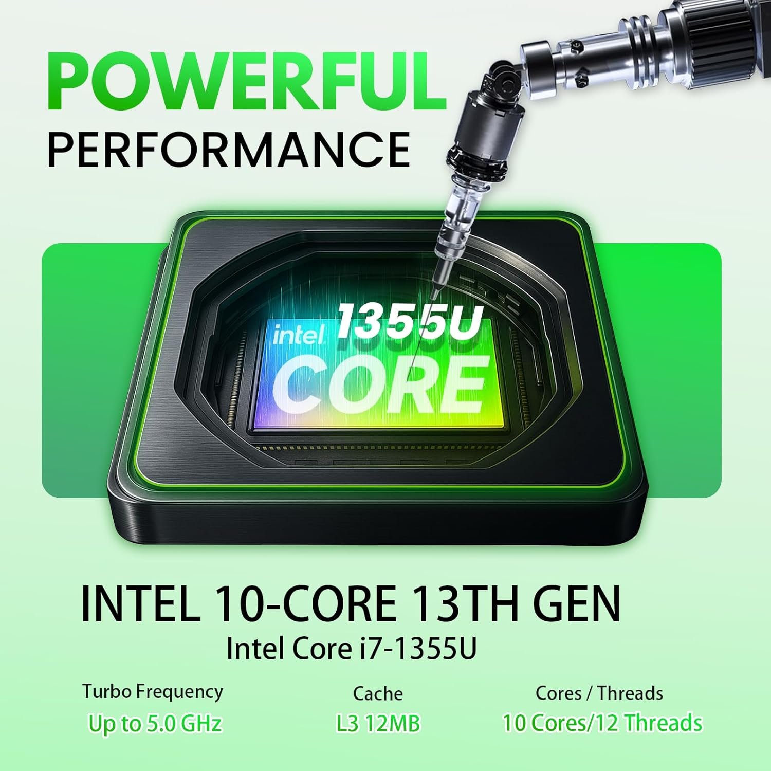 Processor: 13th Gen Intel Core i7-1355U (10-core, 1.7 GHz base / 5.0 GHz turbo)