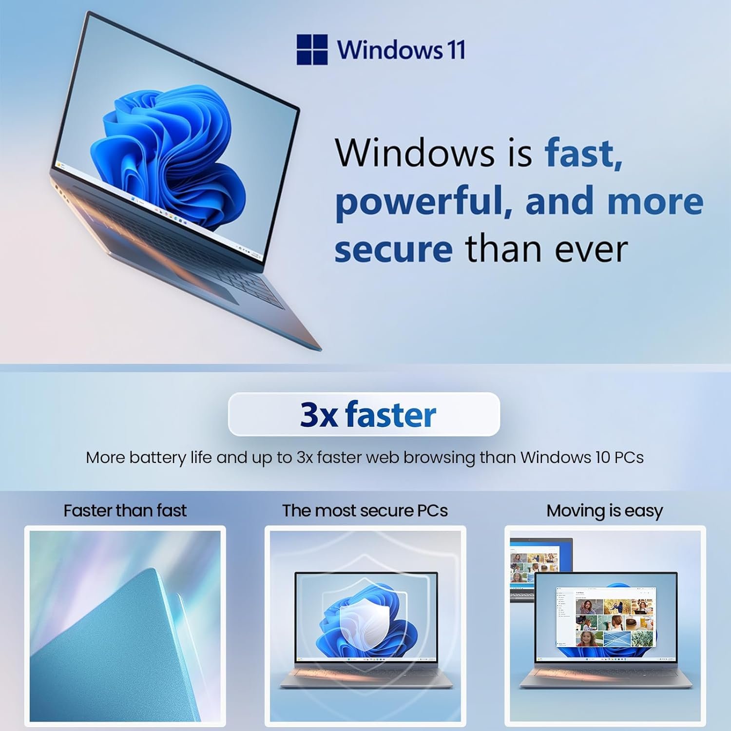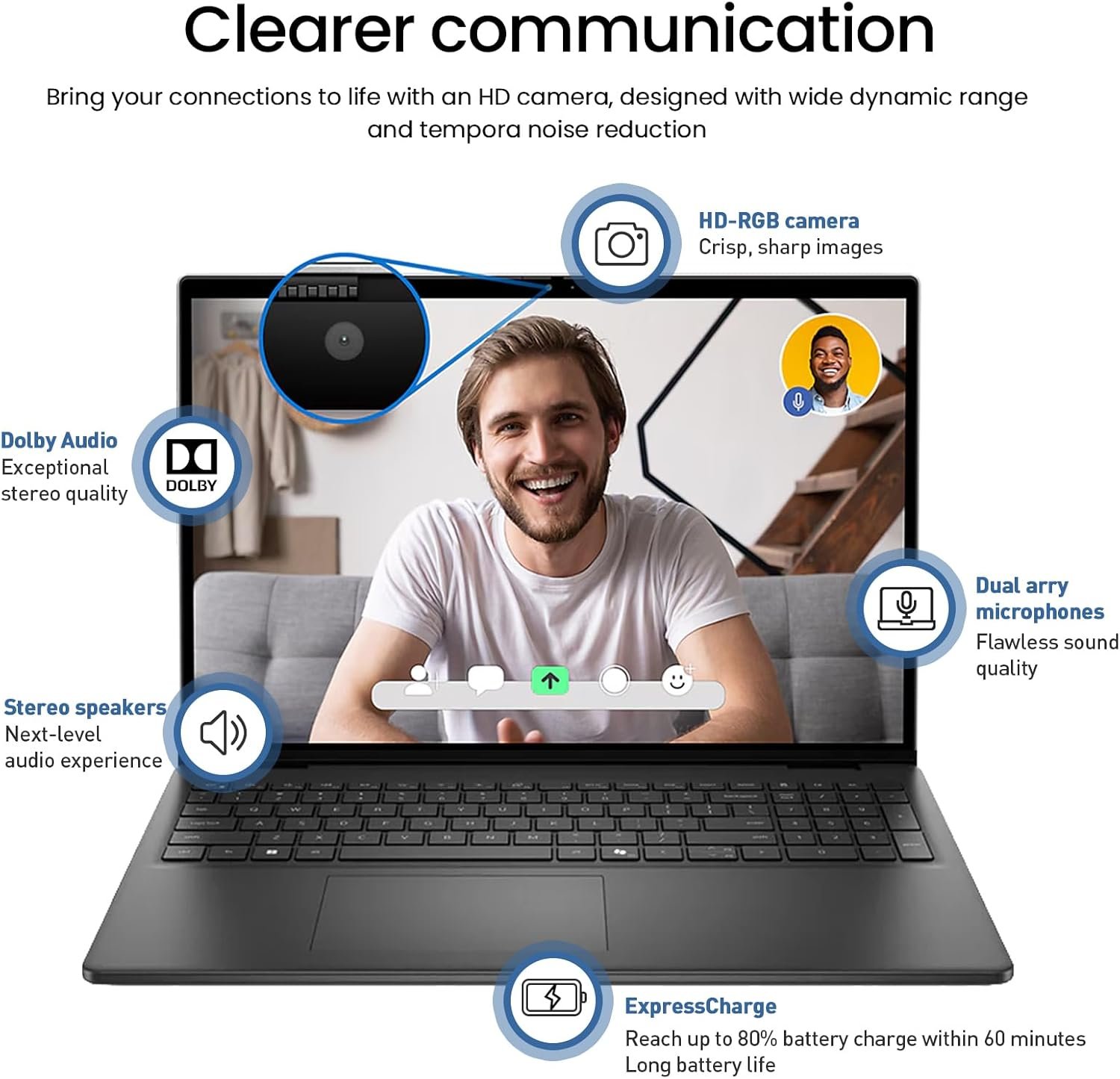 RELIABLE CONNECTIVITY: The notebook laptop Dell offers fast and stable connections with Wi-Fi 6, Bluetooth 5.2, dual USB-A 3.2 ports, HDMI 1.4, and support for two external displays via USB-C (10Gbps, PD, DisplayPort) and HDMI. The Dell laptop Windows 11 Pro provides AI-enhanced performance for smoother multitasking. With a long-lasting battery featuring ExpressCharge, the Windows 11 Pro laptop ensures you stay productive and entertained all day long