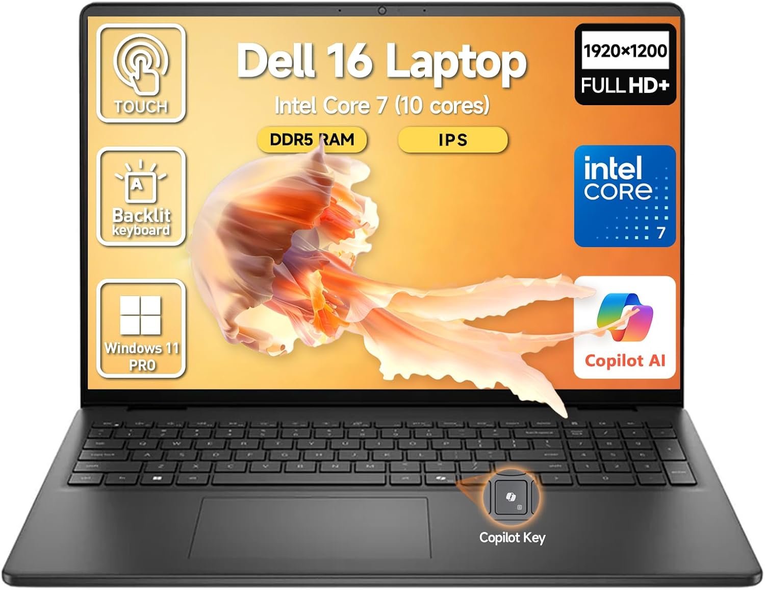 Dell 16 Laptop Touchscreen Computer, 16″ FHD+ Touch Screen Student & Business La…