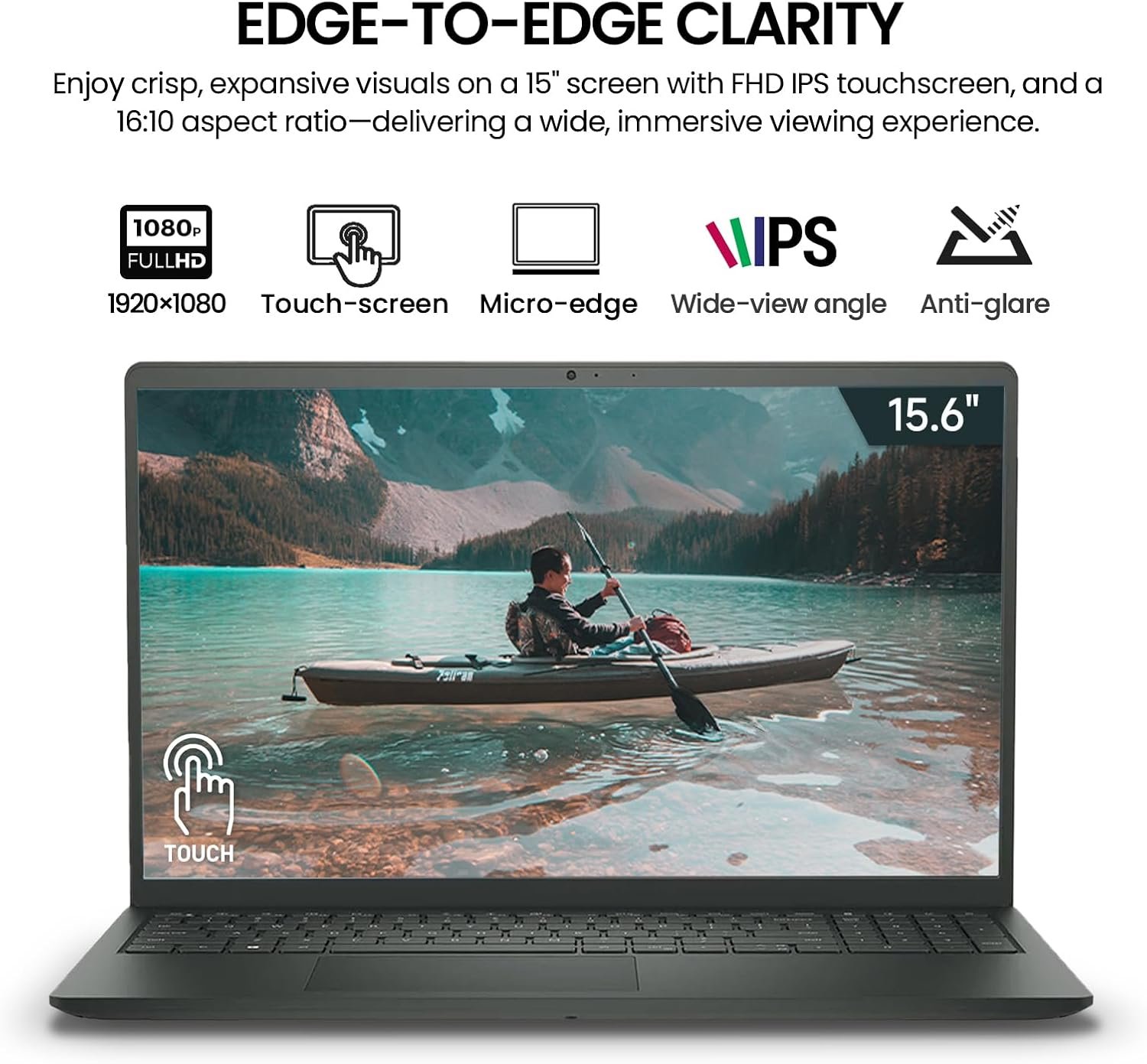 VIBRANT DISPLAY: The Dell Inspiron laptop boasts a 15.6 inch FHD (1920 x 1080) IPS Touch Screen that delivers sharp details and vivid colors. Featuring an anti-glare WVA panel with LED backlighting, the Dell laptop 15 inch screen enhances your viewing comfort, while TÜV Rheinland certification reduces harmful blue light for eye protection. Wrapped in a slim, solid black chassis, the thin and lightweight Dell touchscreen laptop 15.6 inch perfectly combines sleek style with dependable performance
