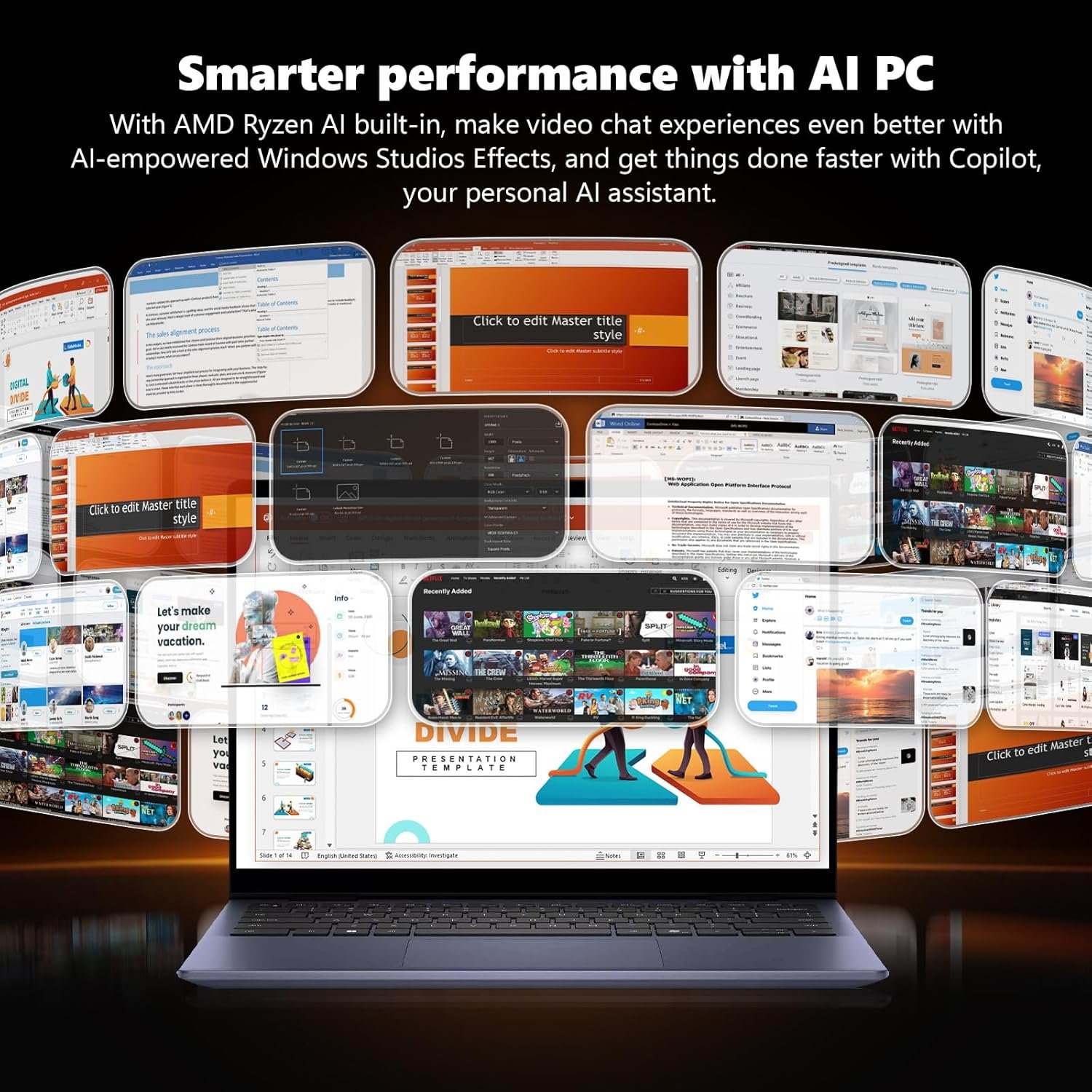 With AMD Ryzen AI built-in, make video chat experiences even better with AI-empowered Windows Studios Effects, and get things done faster with Copilot, your personal AI assistant.