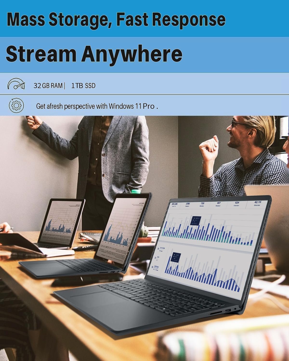 15.6″ FHD Display: This Dell computer features a 15.6-inch display with 1920 x 1080 (Full HD) resolution and vivid images to maximize your entertainment. The 60Hz refresh rate ensures fluid motion, while the WVA panel delivers vibrant colors and wide viewing angles. Say goodbye to distractions with the narrow border design, and experience clarity even in brightly lit environments with the anti-glare,LED-backlit screen.