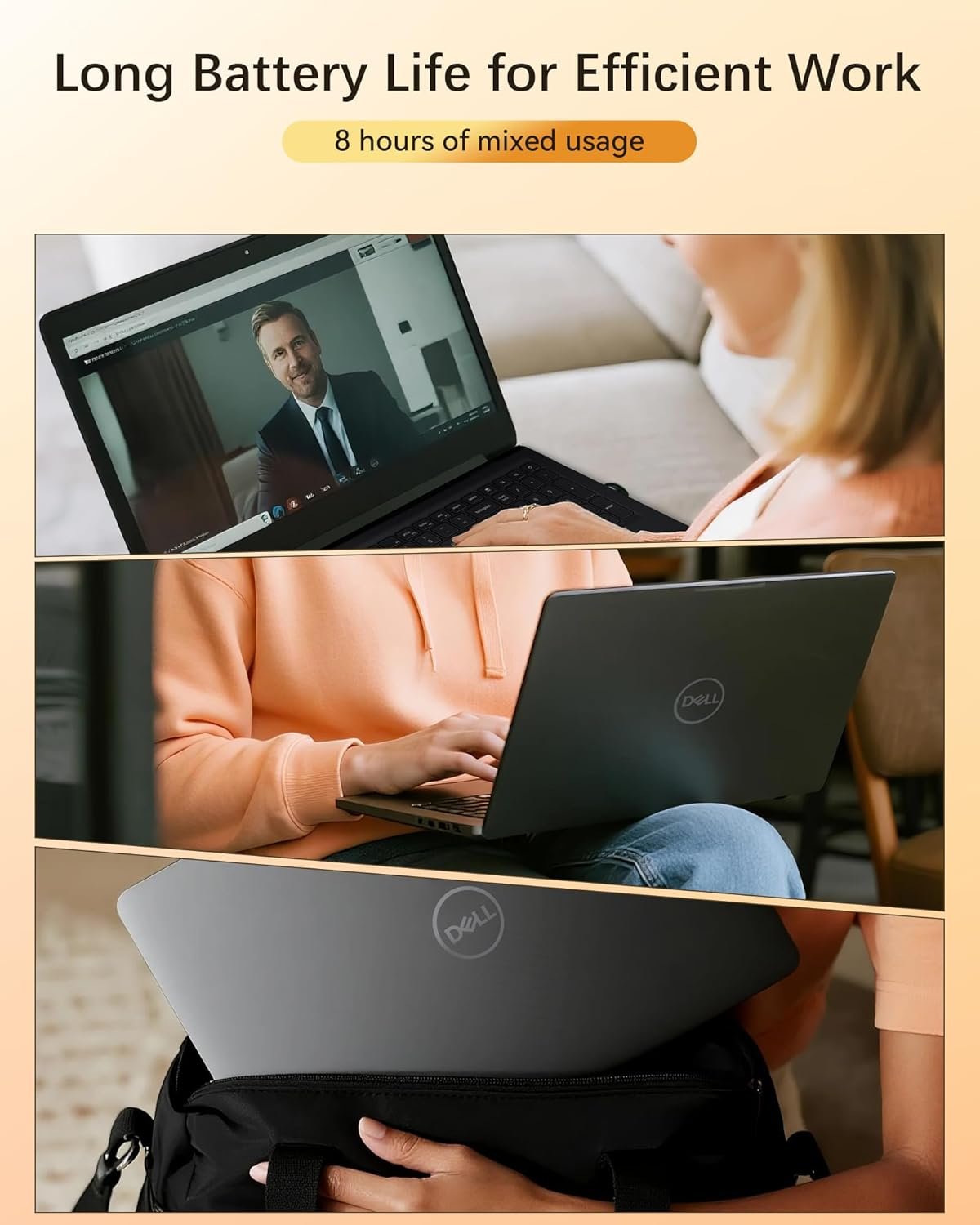 🔋【Premium Mobile Workstation】Dell Business Laptop weighing just 3.85lbs with an 18.9mm ultra-slim profile, this laptop combines portability with durability. The 3-cell 41Whr battery supports Dell Fast Charge (0→80% in 60 mins) and delivers up to 6-8 hours of mixed usage – perfect for business travelers