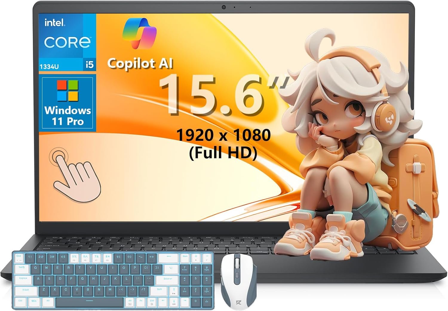🎨【Cinematic Touch Display】The 15.6″ FHD touchscreen (1920×1080) features edge-to-edge glass with anti-glare coating, supporting 10-point multi-touch and 220 nits brightness. The 78% screen-to-body ratio maximizes workspace while the touch capability enhances creative design and intuitive navigation