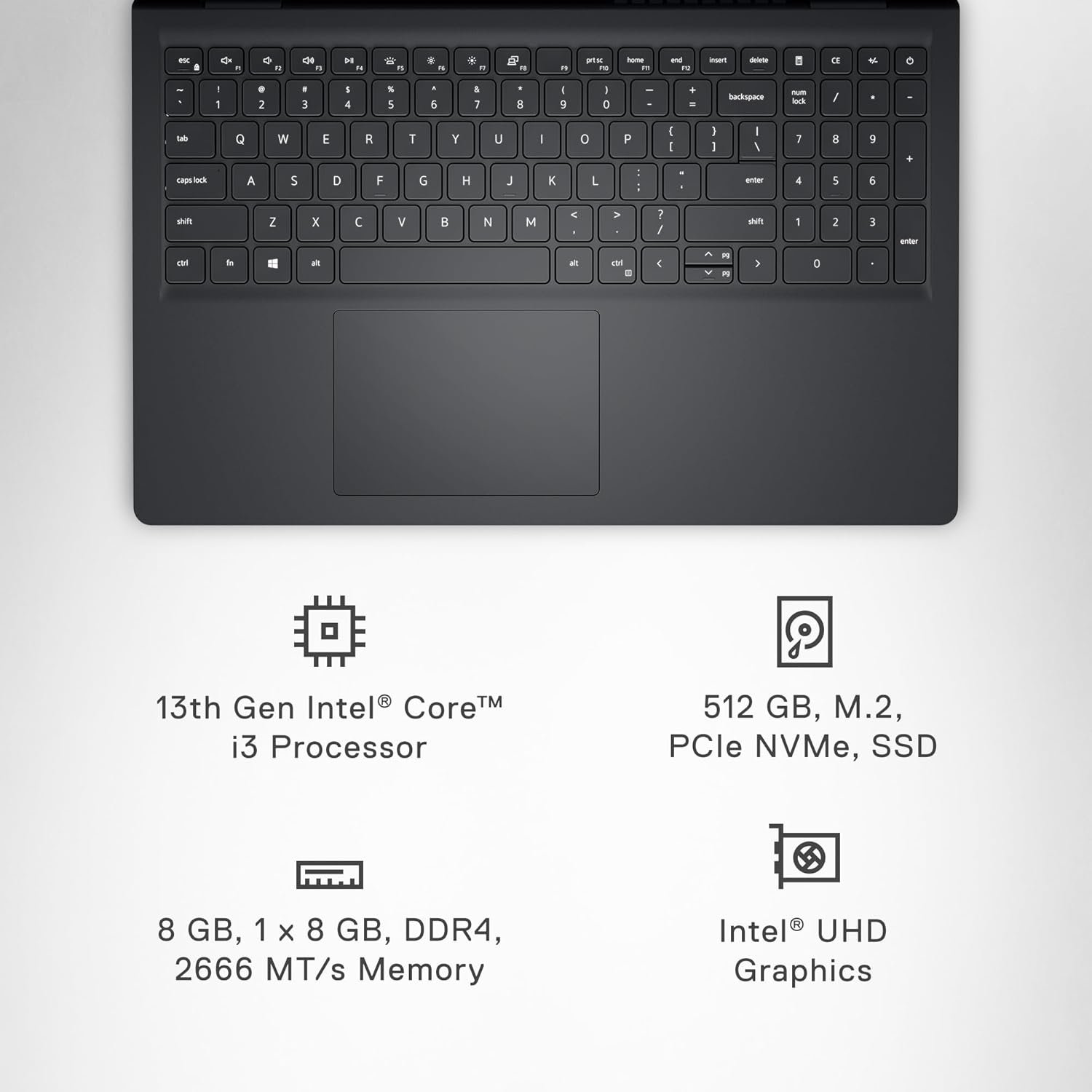 A simple way to take on your day. The Inspiron 15 laptop is as stylish on the outside as it is efficient on the inside. Built with up to 13th Gen Intel processors, you can finish your to-do list in no time. Your Inspiron PC is now ready for business with military-grade testing for added reliability and an easy-to-use, built-in Trusted Platform Module to protect your data. Connect all your personal and business devices with a range of options. Enjoy quality video chats with a built-in FHD webcam that keeps you looking your best. Easily spend more screen time on the things you enjoy with Dell ComfortView software, which is software solution that helps reduce harmful blue light emissions to keep your eyes comfortable over extended viewing times, like your next movie marathon. Adaptive thermals keep your PC running efficiently, whether at your desk or working from your lap. Your Inspiron 15 notebook intelligently adjusts its power and thermals to keep running smoothly, using advanced algorithms and accelerometers.