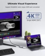 Premium Display Performance Experience ultra-sharp 4K resolution across dual displays, with support for both 4K@30Hz (dual screen) and 4K@60Hz (single screen) output. Our advanced display technology ensures vibrant colors and crisp details, perfect for creative work, multitasking, or immersive entertainment. The adapter automatically optimizes resolution for your specific monitors, supporting 2K@60Hz and 1080p@60Hz when needed. Smart Compatibility Designed for modern productivity, this adapter works seamlessly with Thunderbolt 3/4, USB4, and DisplayPort Alt Mode enabled devices. Windows users enjoy full extended display functionality, while Mac systems support high-quality mirroring. The built-in intelligent chip automatically detects your device capabilities to deliver optimal performance without any driver installation required. Before You Purchase Please confirm your laptop’s USB-C port supports video output (look for the DP logo). Note that Mac systems are limited to mirror mode due to macOS restrictions, and the adapter doesn’t provide power delivery to your laptop. If unsure about compatibility, our support team is ready to assist with your specific device configuration questions. Ideal For Perfect for professionals, creators, and gamers needing multi-screen setups – from office work and design to entertainment. Note1 Requires USB-C port with video output capability (check for DP logo) Note2 Mac systems limited to screen mirroring due to macOS restrictions Note3 Does not provide power delivery – please use separate charger for your laptop