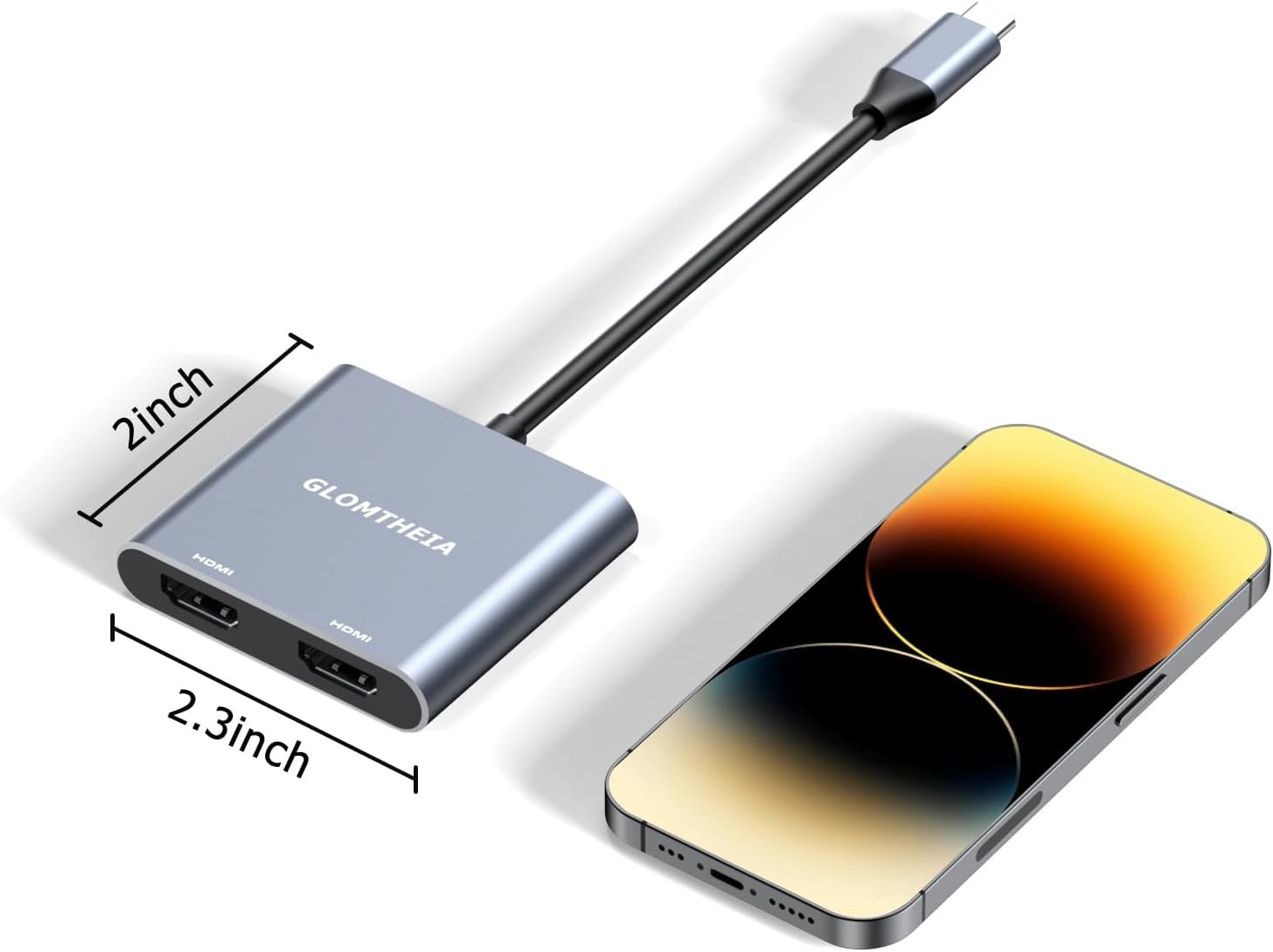 Dual HDMI Adapter for 2 Monitors Extended Display 1 in 2 Out, USB C to HDMI Spli…