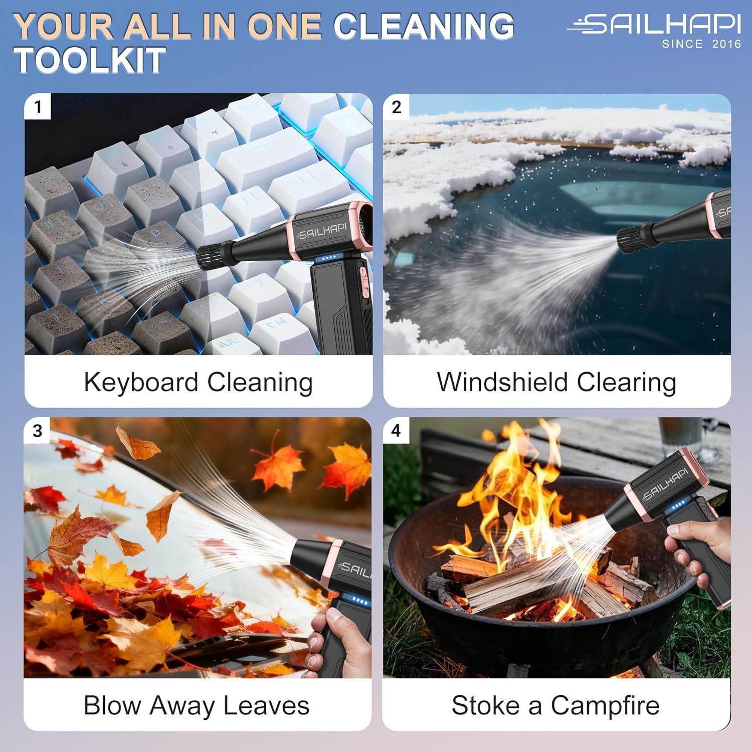 By replacing pricey disposable air cans and reducing the need for frequent cleaning tool replacements, our rechargeable air duster offers a sustainable, long term cleaning solution that cuts costs and minimizes waste.