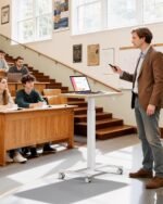 Compact Design for Versatile Use: The 25.6″ × 15.7″ desktop fits small spaces while providing ample room for your laptop, iPad, and books. This standing desk for teachers allows you to sit, stand, and move freely around the classroom. It’s also perfect for home workers who need to save space and maintain flexibility.