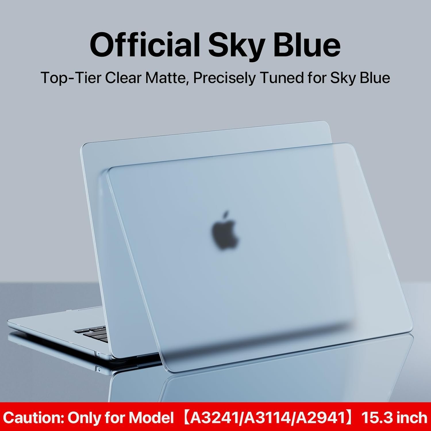 【Official SkyBlue, 100% Color Match】High Transparency Matte + Subtle SkyBlue Hues, making this macbook air 15 inch case an invisible Armor. Optical Simulation Tech via 10,000+ ultra-precise calibrations achieves flawless replication of original color