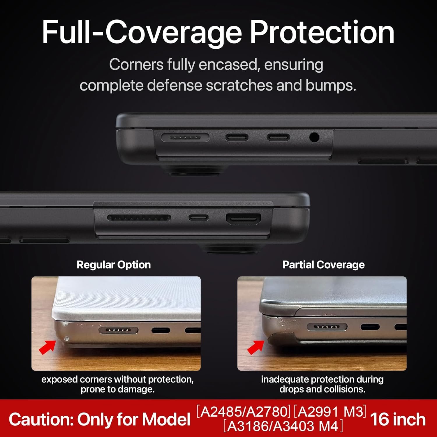 Precise Cutouts, Seamless Fit: Compatible for Macbook Pro 16 inch case, this case is molded according to original Macbook using micro 3D cutting tech. It fits snugly like a second skin, allows easy access to all ports and ensures smooth opening and closing