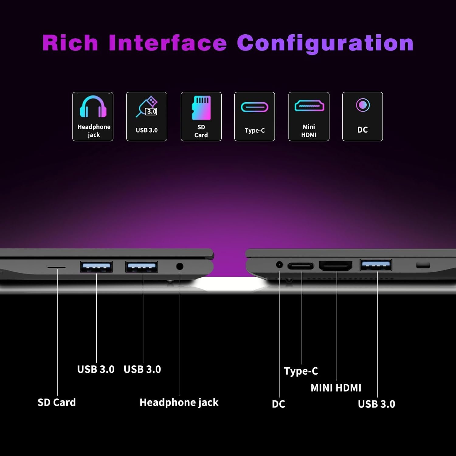 Comprehensive Connectivity Options: Includes USB-A 3.0 (x3), Type-C (Data 2.0), HDMI, Micro SD card reader, 3.5mm headphone jack, and DC charging port. Supports dual-band Wi-Fi (2.4G/5G) and Bluetooth 5.0 for seamless wireless connections.